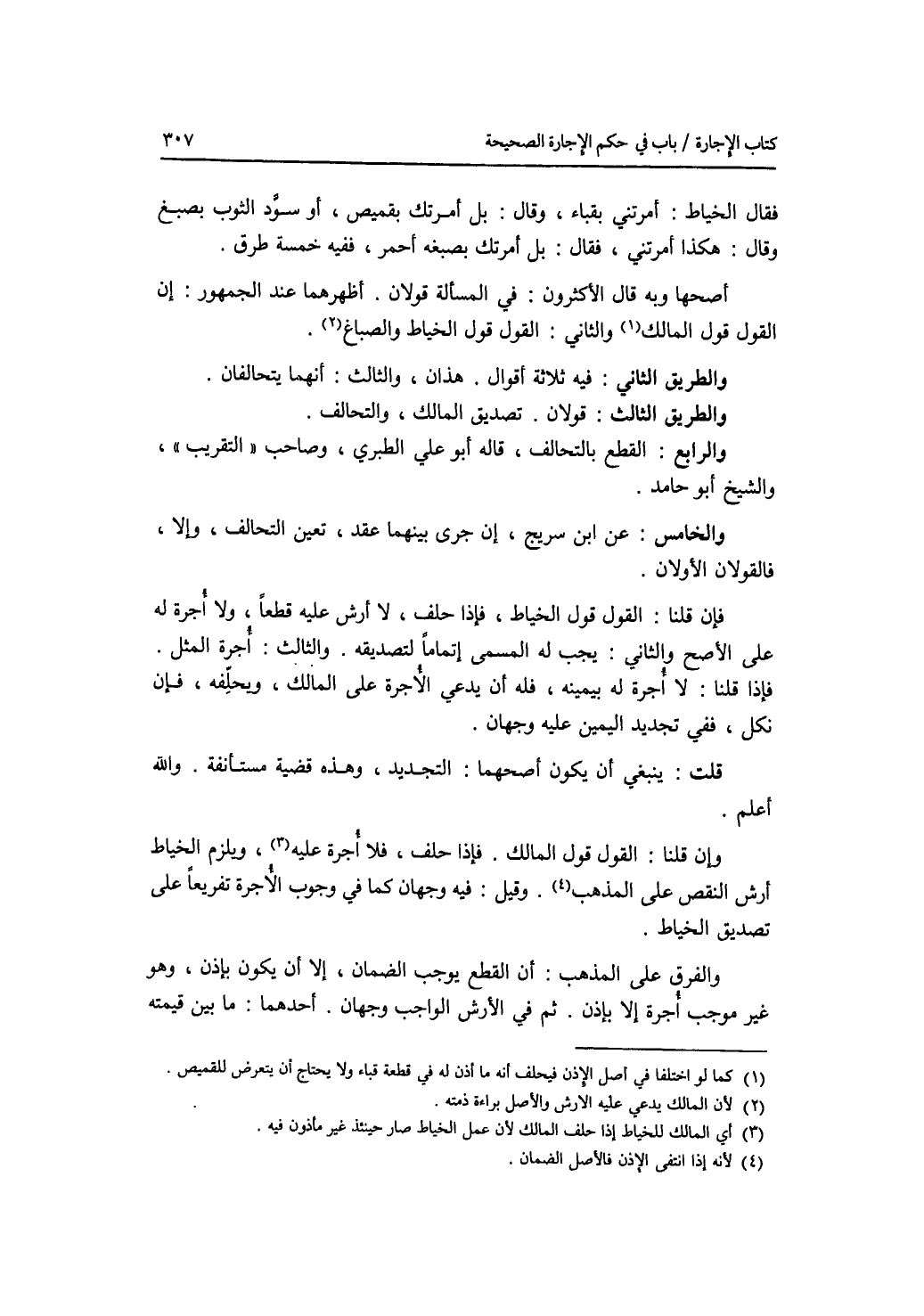 فقال الخياط: أمرتني بقباء، وقال: بل أمرتك بقميص، أو سود الثوب بصبغ وقال: هكذا أمرتني، فقال: بل أمرتك بصبغة أحمر، ففيه خمسة طرق. أصحها وبه قال الاكثرون: في المسألة قولان. أظهرهما عند الجمهور: أن القول قول المالك. والثاني: القول قول الخياط والصباغ. والطريق الثاني: فيه ثلاثة أقوال. هذان، والثالث: أنهما يتحالفان. والطريق الثالث: قولان. تصديق المالك، والتحالف. والرابع: القطع بالتحالف، قاله أبو علي الطبري، وصاحب التقريب، والشيخ أبو حامد. والخامس: عن ابن سريج، إن جرى بينهما عقد، تعين التحالف، وإلا، فالقولان الاولان. فإ قلنا: القول قول الخياط، فإذا حلف، لا أرش عليه قطعا، ولا أجرة له على الاصح. والثاني: يجب له المسمى إتماما لتصديقه. والثالث: أجرة المثل. فإذا قلنا: لا أجرة له بيمينه، فله أن يدعي الاجرة على المالك، ويحلفه، فإن نكل، ففي تجديد اليمين عليه وجهان. قلت: ينبغي أن يكون أصحهما: التجديد، وهذه قضية مسأنفة. والله أعلم وإن قلنا: القول قول المالك. فإذا حلف، فلا أجرة عليه، ويلزم الخياط أرش النقص على المذهب. وقيل: فيه وجهان كما في وجوب الاجرة تفريعا على تصديق الخياط. والفرق على المذهب: أن القطع يوجب الضمان، إلا أن يكون بإذن، وهو غير موجب إلا بإذن. ثم في الارش الواجب وجهان. أحدهما: ما بين قيمته