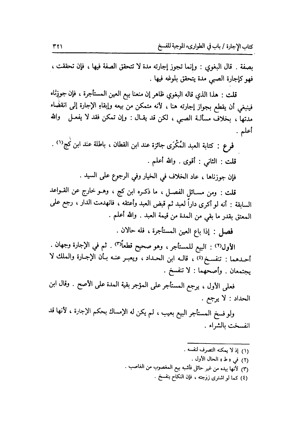 بصفة. قال البغوي: وإنما تجوز إجارته مدة لا تتحقق الصفة فيها، فإن تحققت، فهو كإجارة الصبي مدة يتحقق بلوغه فيها. قلت: هذا الذي قاله البغوي ظاهر إن منعنا بيع العين المستأجرة، فإن جوزناه فينبغي أن يقطع بجواز إجارته هنا، لانه متمكن من بيعه، وإبقاء الاجارة إلى انقضاء مدتها، بخلاف مسألة الصبي، لكن قد يقال: وإن تمكن فقد لا يفعل. والله أعلم فرع كتابة العبد المكرى جائزة عند ابن القطان، باطلة عند ابن كج. قلت: الثاني: أقوى. والله أعلم فإن جوزناها، عاد الخلاف في الخيار وفي الرجوع على السيد. قلت: ومن مسائل الفصل، ما ذكره ابن كج، وهو خارج عن القواعد السابقة: أنه لو أكرى دارا لعبد ثم قبض العبد وأعتقه، فانهدمت الدار، رجع على المعتق بقدر ما بقي في المدة من قيمة العبد. والله أعلم.