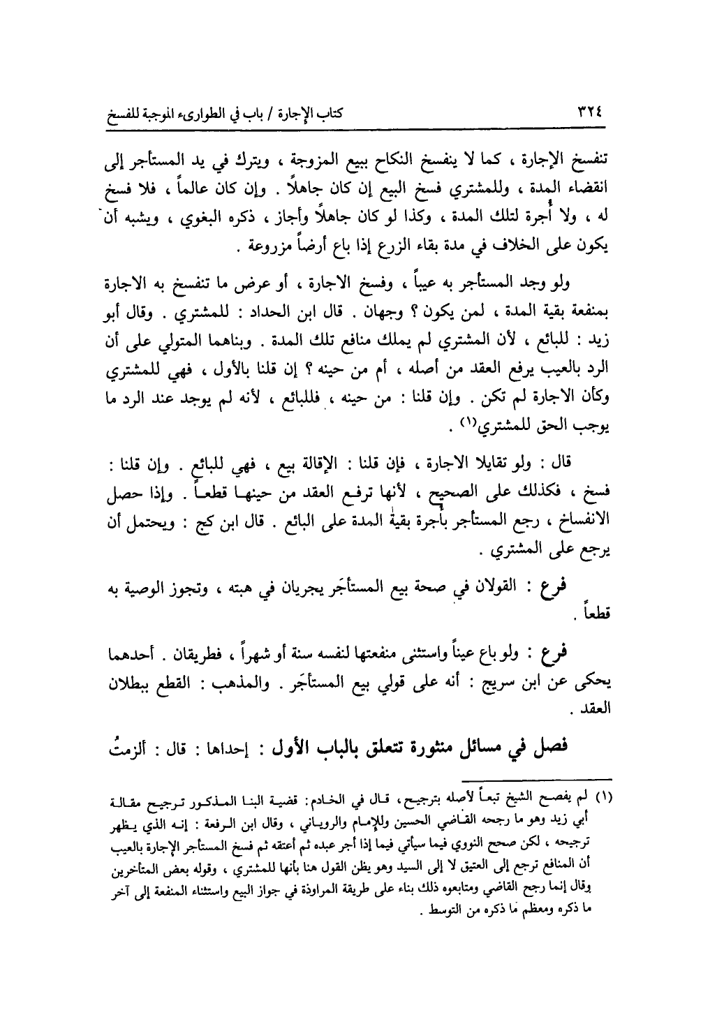 فصل في مسائل منثورة تتعلق بالباب الأول إحداها: قال: ألزمت