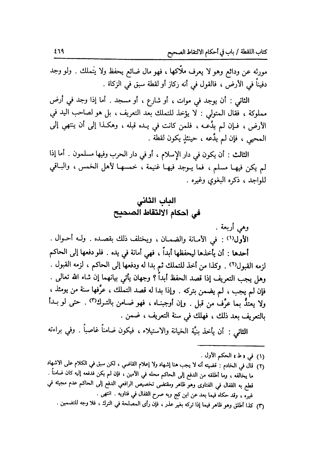 الباب الثاني : في أحكام الالتقاط الصحيح وهي أربعة.