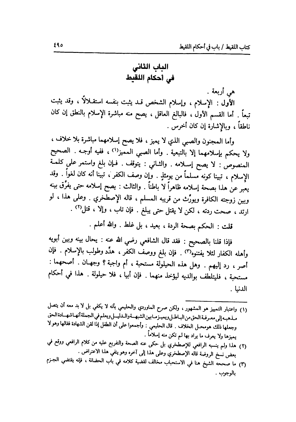 الباب الثاني : في أحكام اللقيط هي أربعة.
