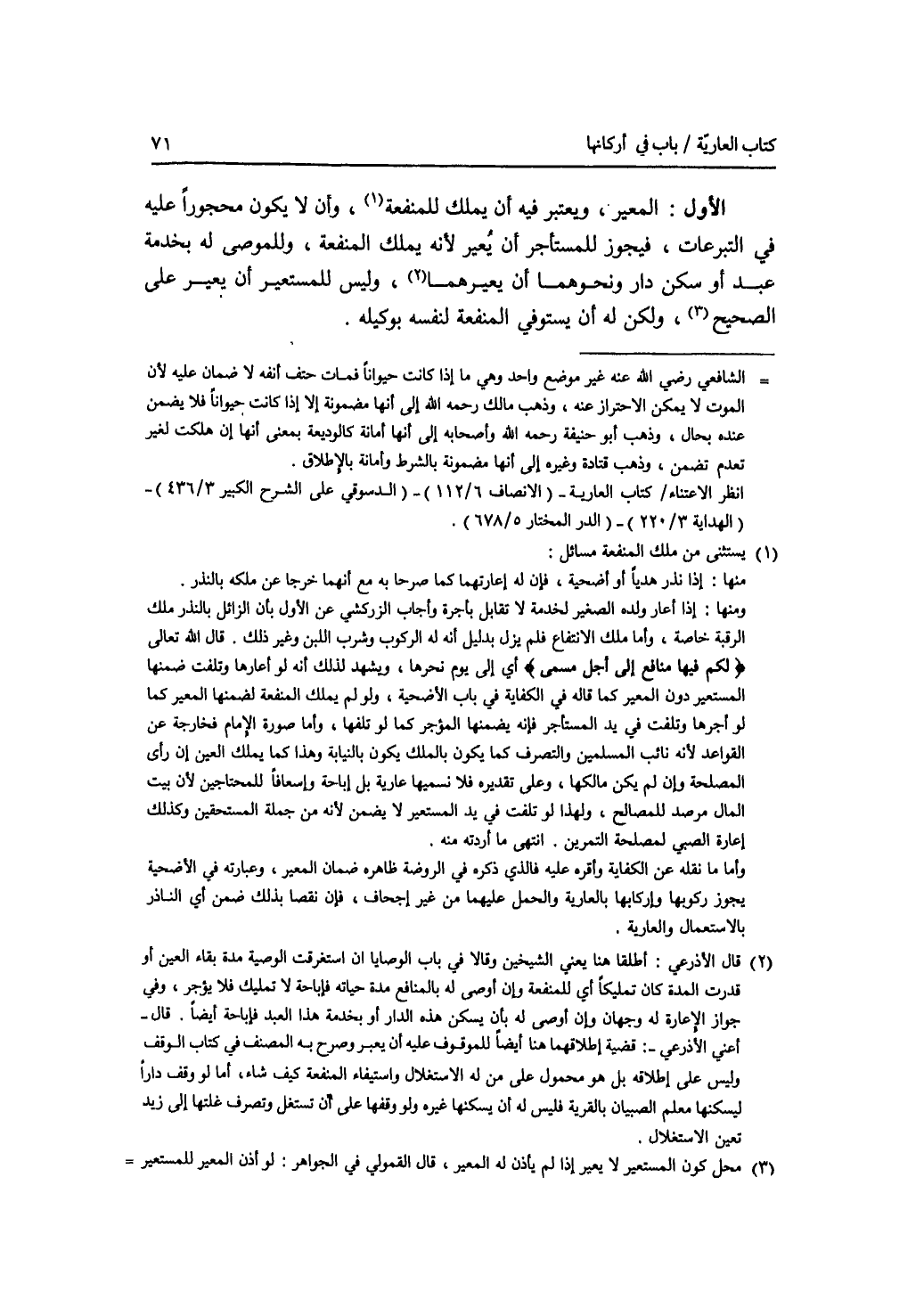 الاول: المعير، ويعتبر فيه أن يملك للمنفعة، وأن لا يكون محجورا عليه في التبرعات، فيجوز للمستأجر أن يعير لانه يملك المنفعة، وللموصى له بخدمة عبد أو سكن دار ونحوهما أن يعيرهما، وليس للمستعير أن يعير على الصحيح، ولكن له أن يستوفي المنفعة لنفسه بوكيله.