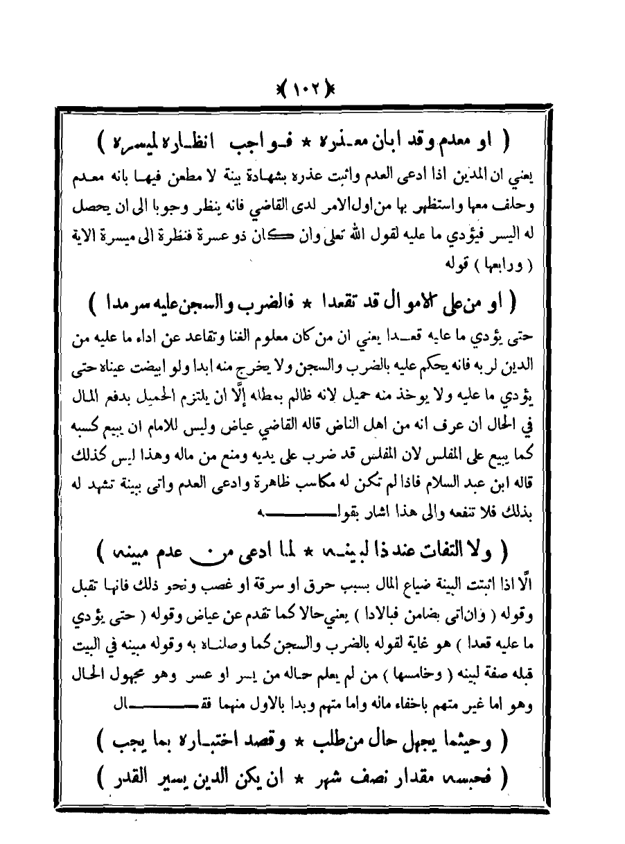 (أو معدم وقد أبان معذرة ... فواجب انظاره لميسرة)