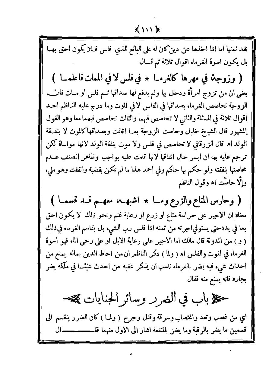 (وزوجة في مهرها كالغرماء ... في فلس لا في الممات فاعلما)