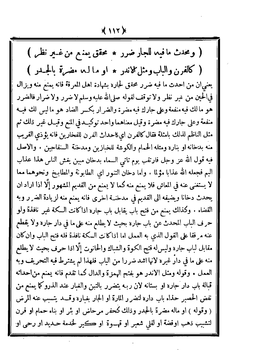 (ومحدث ما فيه للجار ضرر ... محقق يمنع من غير نظر)
