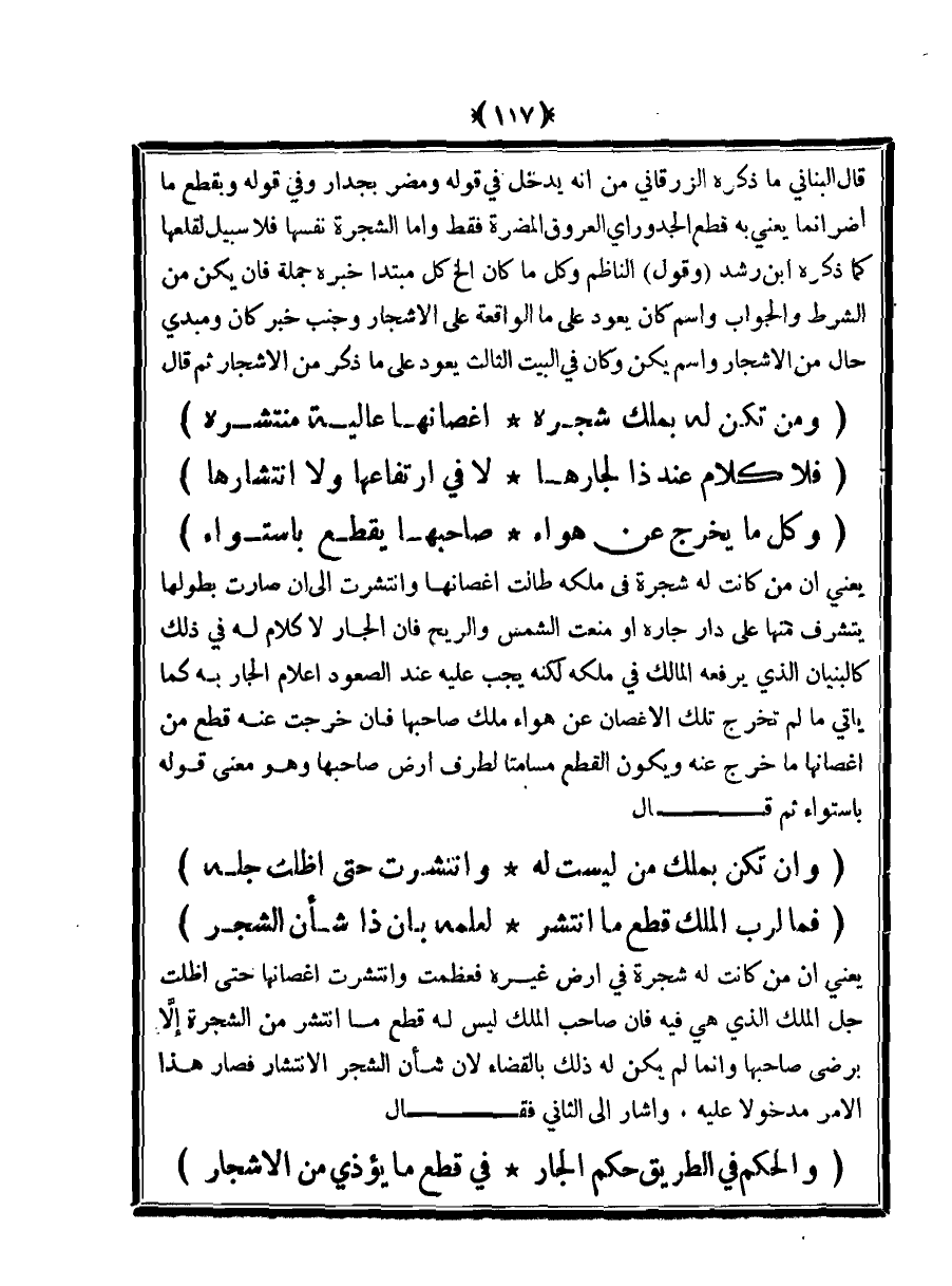 (والحكم في الطريق حكم الجار ... في قطع ما يؤذي الأشجار)