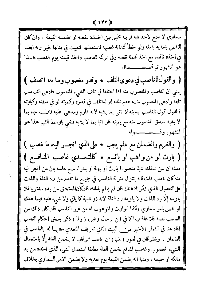 (والقول للغاصب في دعوى التلف ... وقدر مغصوب وما به أتصف)