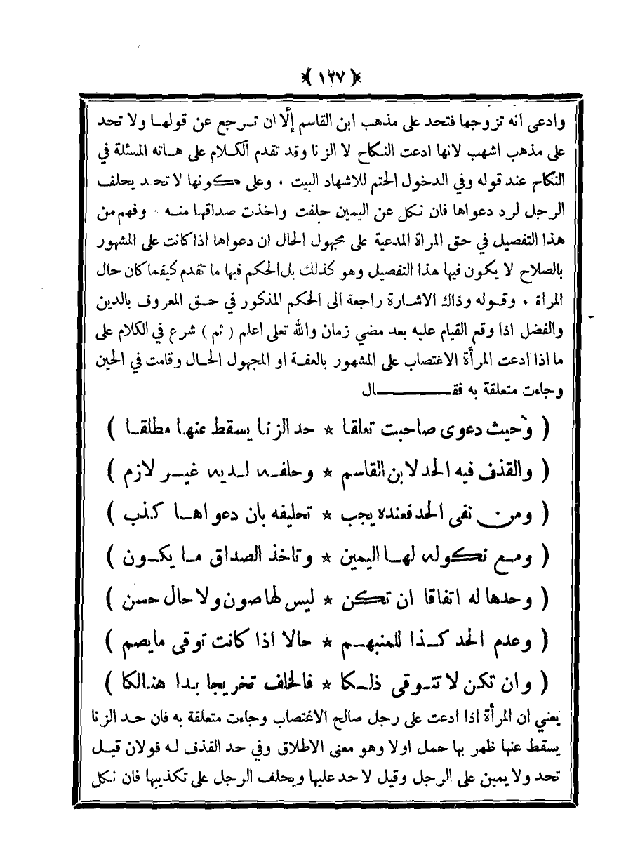 (وحيث دعوى صاحبت تعلقًا ... حد الزنا يسقط عنها مطلقًا)