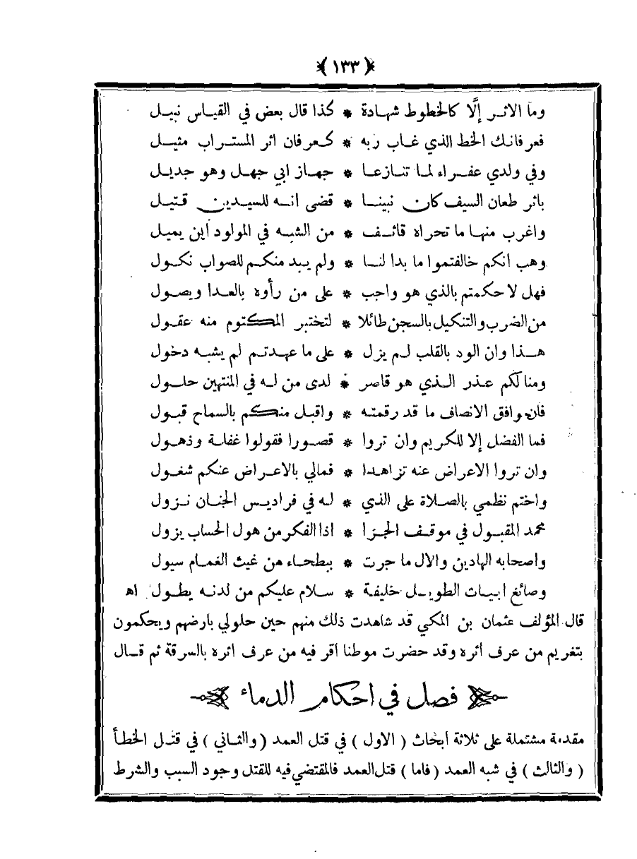 مقدمة مشتملة على ثلاثة أبحاث (الأول) في قتل العمد (والثاني) في قتل الخطأ (والثالث) في شبه العمد (فأما) قتل العمد فالمقتضي فيه للقتل وجود السبب والشرط