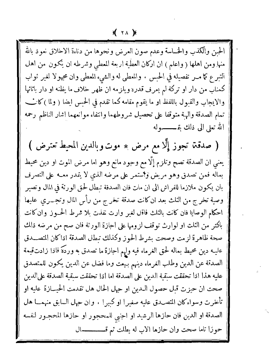 (صدقة تجوز إلا مع مرض ... موت وبالدين المحيط تعترض)