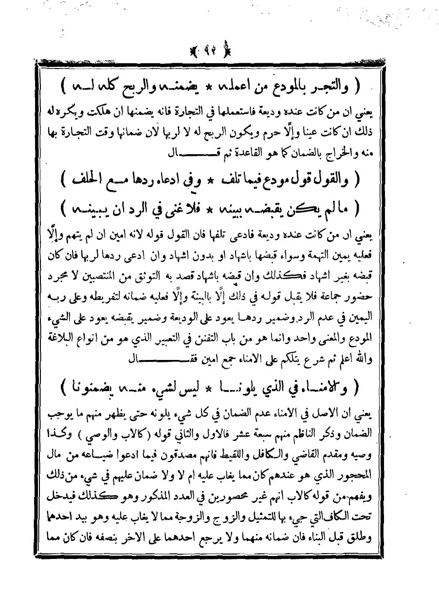 (والتجر بالمودع من اعمله ... يضمنه والربح كله له)