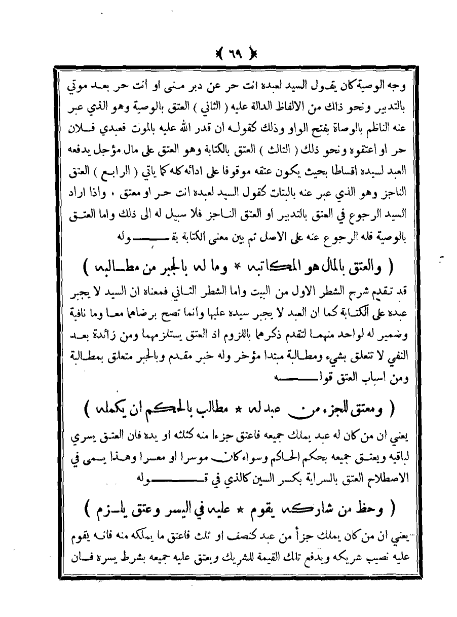 (ومعتق للجزء من عبد له ... مطالب بالحكم أن يكمله)