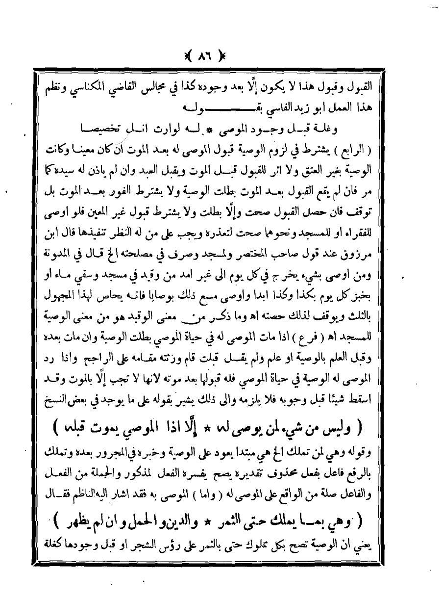(وليس من شيء لمن يوصى له ... إلا إذا الموصي يموت قبله)