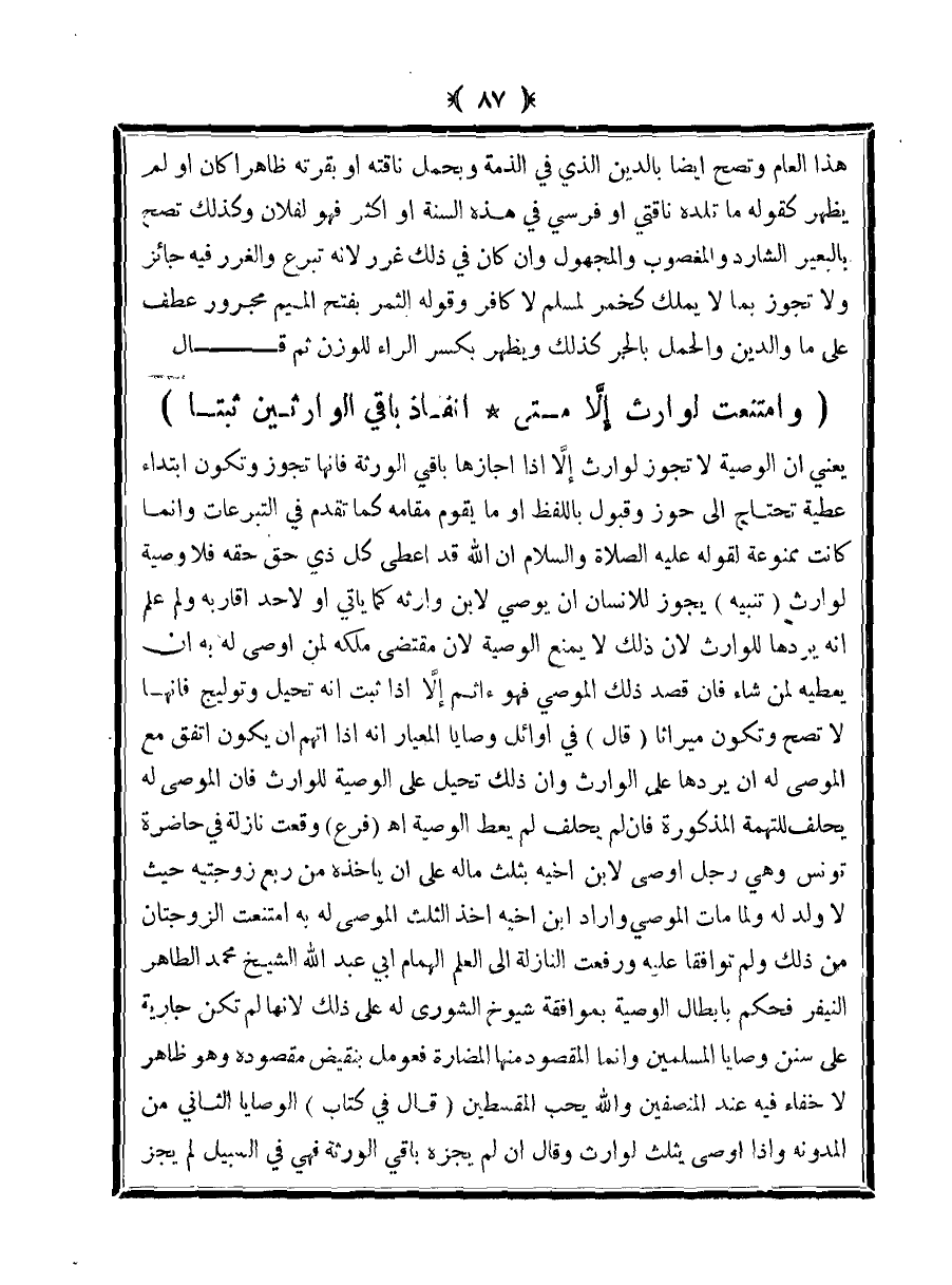 (وامتنعت لوارث إلا متى .... إنفاذ باقي الوارثين ثبتا)