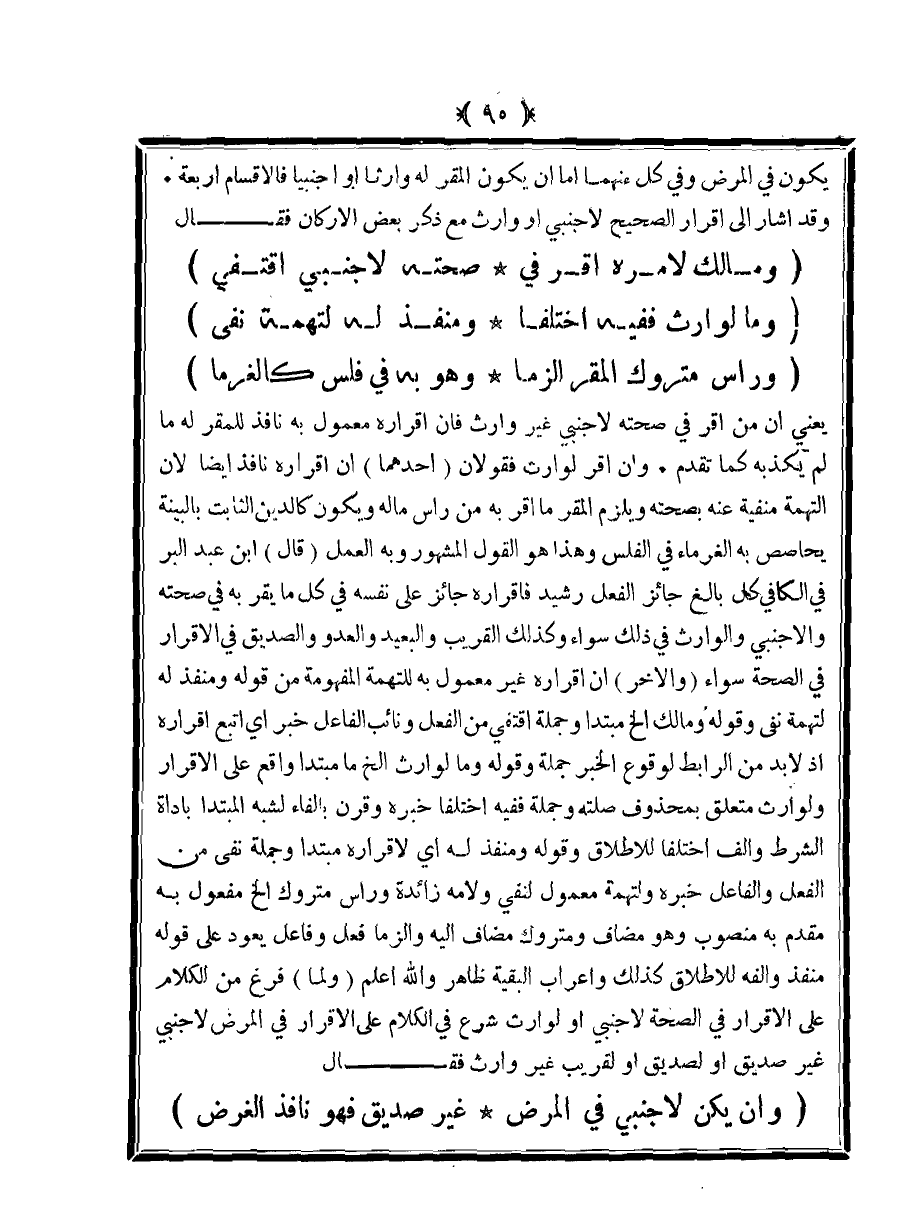 (ومالك لأمره أقر في ... صحته لأجنبي أقتفي)