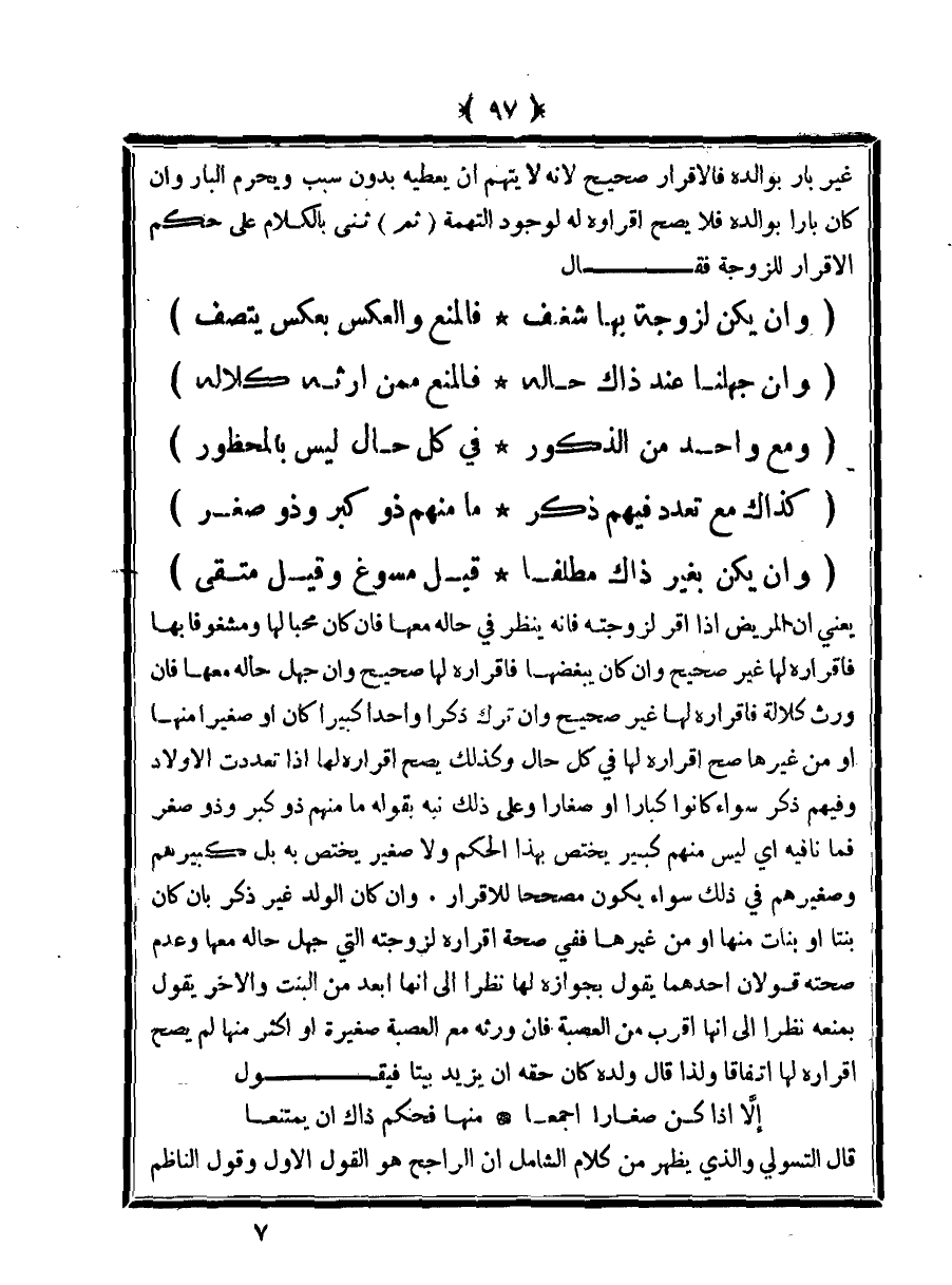 قال التسولي والذي يظهر من كلام الشامل إن الراجح هو القول الأول وقول الناظم