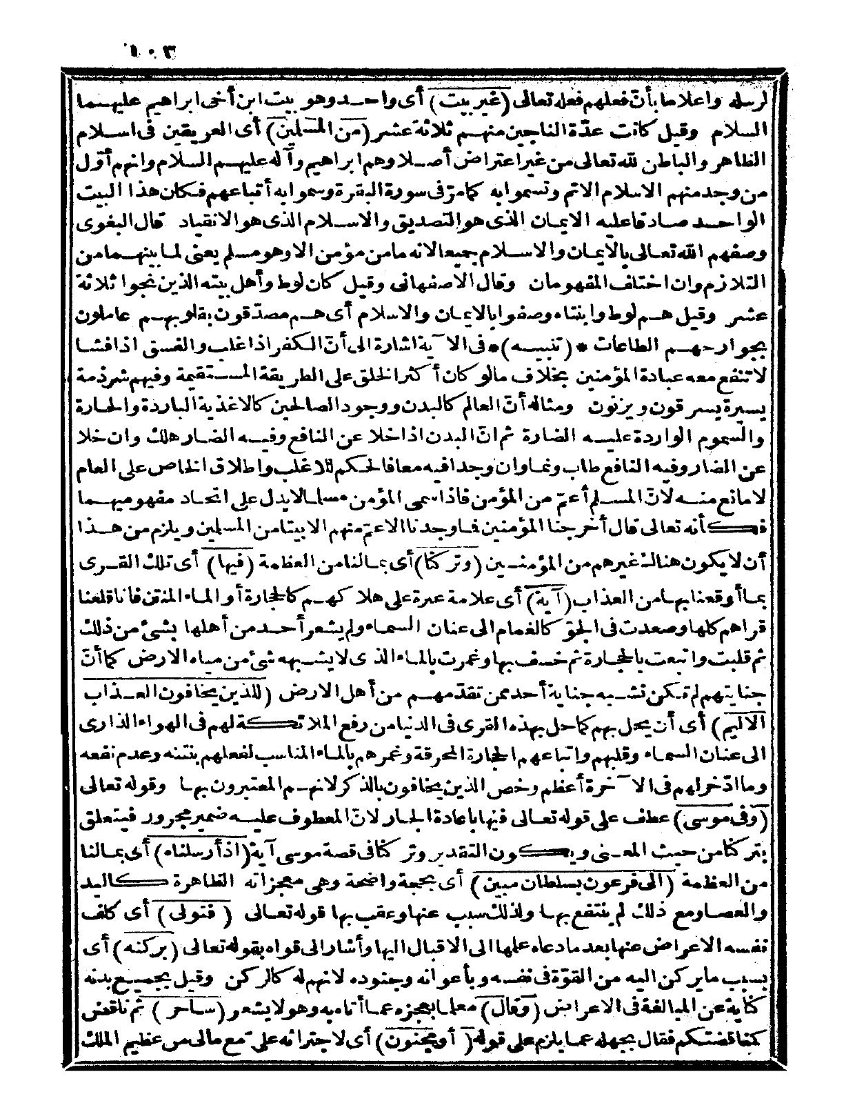 تنبيه: في الآية إشارة إلى أنّ الكفر إذا غلب والفسق إذا فشا لا تنفع معه عبادة المؤمنين، بخلاف ما لو كان أكثر الخلق على الطريقة المستقيمة وفيهم شرذمة يسيرة يسرقون ويزنون ومثاله: أنّ العالم كالبدن، ووجود الصالحين كالأغذية الباردة والحارة والسموم والواردة عليه الضارة، ثم إنّ البدن إذا خلا عن النافع وفيه الضار هلك وإن خلا عن الضار وفيه النافع طاب ونما، وإن وجدا فيه معاً فالحكم للأغلب، وإطلاق الخاص على العام لا مانع منه لأنّ المسلم أعم من المؤمن، فإذا سمى المؤمن مسلماً لا يدل على اتحاد مفهوميهما فكأنه تعالى قال: أخرجنا المؤمنين فما وجدنا الأعم منهم إلا بيتاً من المسلمين، ويلزم من هذا أن لا يكون هناك غيرهم من المؤمنين.