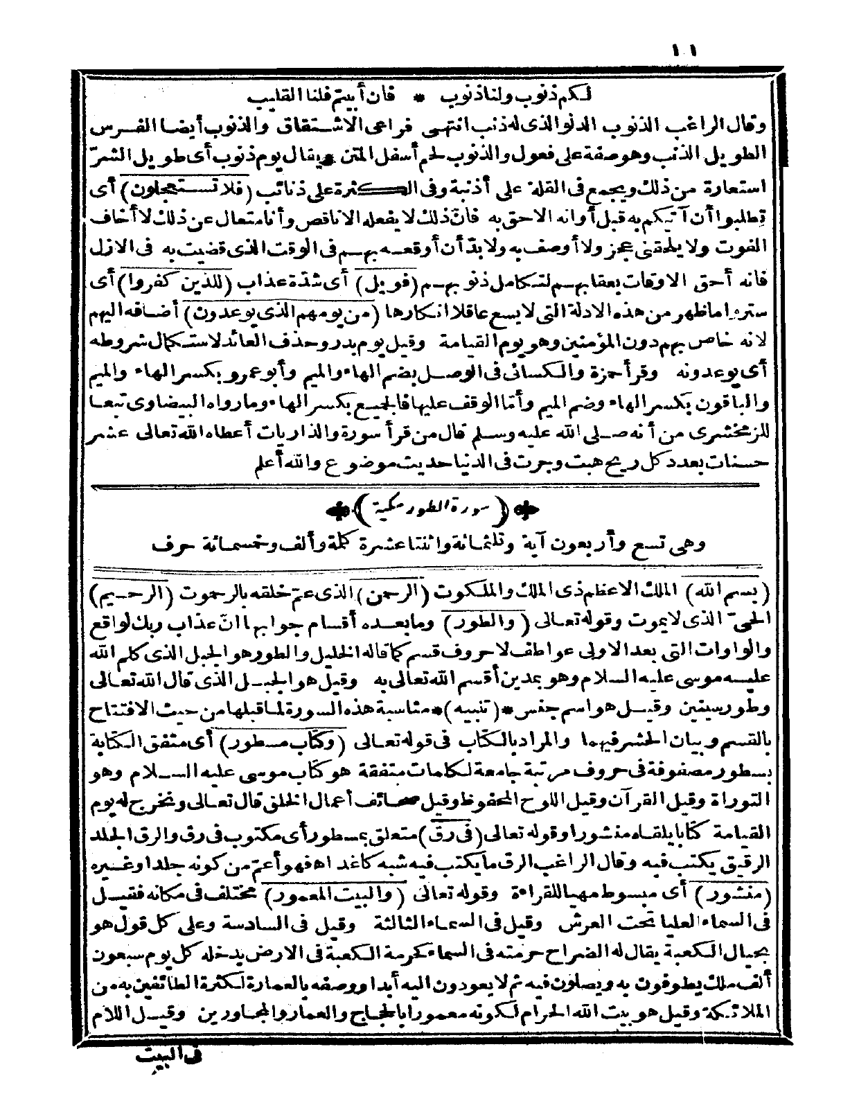 والطور: هو الجبل الذي كلم الله عليه موسى عليه السلام وهو بمدين أقسم الله تعالى به وقيل: هو الجبل الذي قال الله تعالى {وطور سنين} وقيل هو اسم جنس.