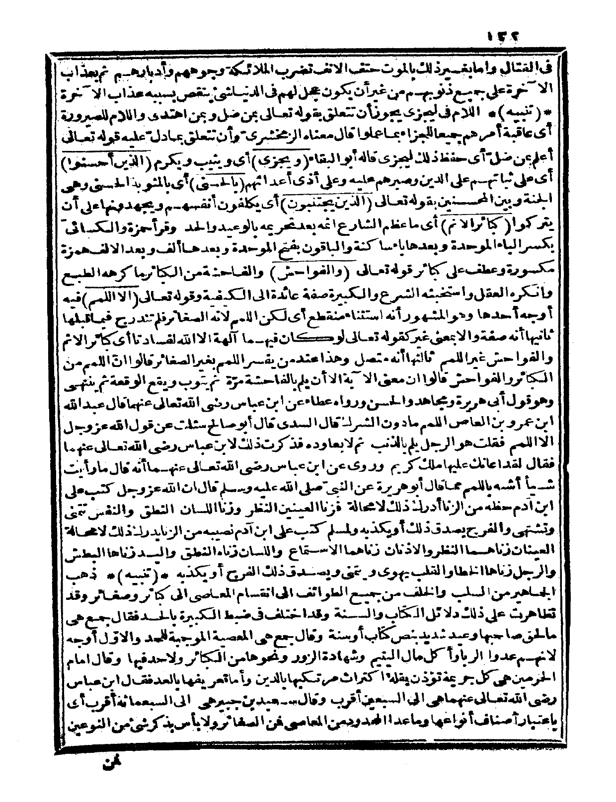 تنبيه: ذهب الجماهير من السلف والخلف من جميع الطوائف إلى انقسام المعاصي إلى كبائر وصغائر، وقد تظاهرت على ذلك دلائل الكتاب والسنة، وقد اختلف في ضبط الكبيرة بالحد فقال جمع: هي ما لحق صاحبها وعيد شديد بنص كتاب أو سنة، وقال جمع: هي المعصية الموجبة للحد والأوّل أوجه لأنهم عدوا الربا وأكل مال اليتيم وشهادة الزور ونحوها من الكبائر ولا حد فيها وقال إمام الحرمين: هي كل جريمة تؤذن بقلة اكتراث مرتكبها بالدين، وأما تعريفها بالعد فقال ابن عباس رضي الله تعالى عنهما: هي إلى السبعين أقرب وقال سعيد بن جبير هي إلى السبعمائة أقرب أي باعتبار أصناف أنواعها وما عدا المحدود من المعاصي فمن الصغائر ولا بأس بذكر شيء من النوعين.