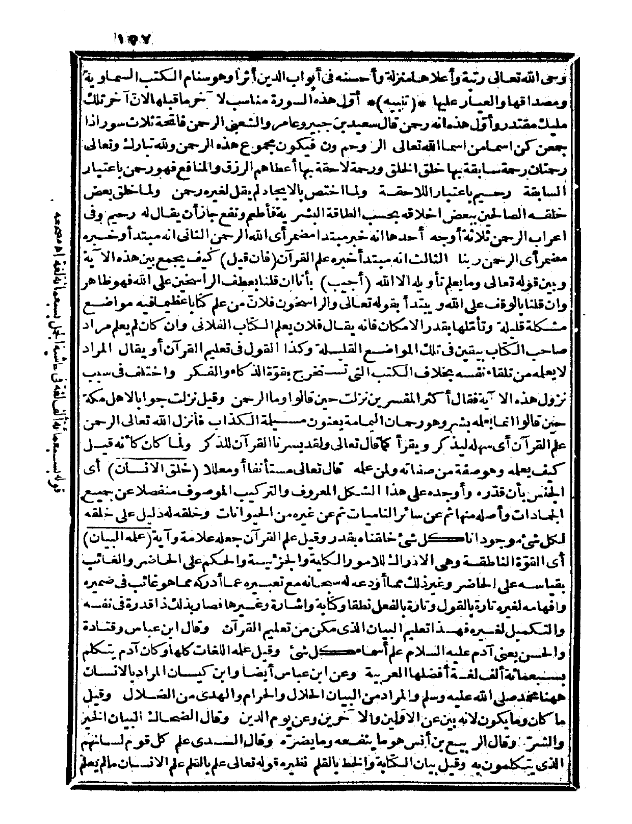 واختلف في سبب نزول هذه الآية فقال أكثر المفسرين: نزلت حين قالوا: وما الرحمن، وقيل: نزلت جواباً لأهل مكة حين قالوا: إنما يعلمه بشر وهو رحمان اليمامة يعنون مسيلمة الكذاب؛ فأنزل الله تعالى: {الرحمن علم القرآن} أي: سهله ليذكر ويقرأ، كما قال تعالى: {ولقد يسرنا القرآن للذكر} (القمر: 17)