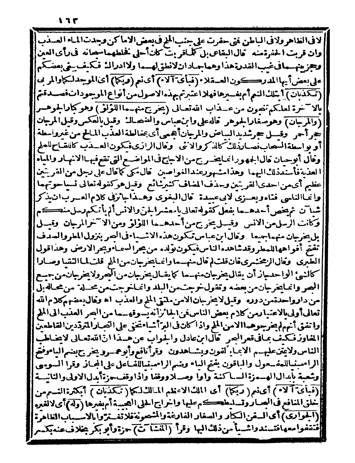 وقال بعضهم: كلام الله تعالى أولى بالاعتبار من كلام بعض الناس، فمن الجائز أنه يسوقهما من البحر العذب إلى الملح، واتفق أنهم لم يخرجوهما إلا من الملح، وإذا كان في البر أشياء تخفى على التجار المتردّدين القاطعين المفاوز فكيف بما في قعر البحر. قال ابن عادل: والجواب عن هذا أنّ الله تعالى لا يخاطب الناس ولا يمتن عليهم إلا بما يألفون ويشاهدون.