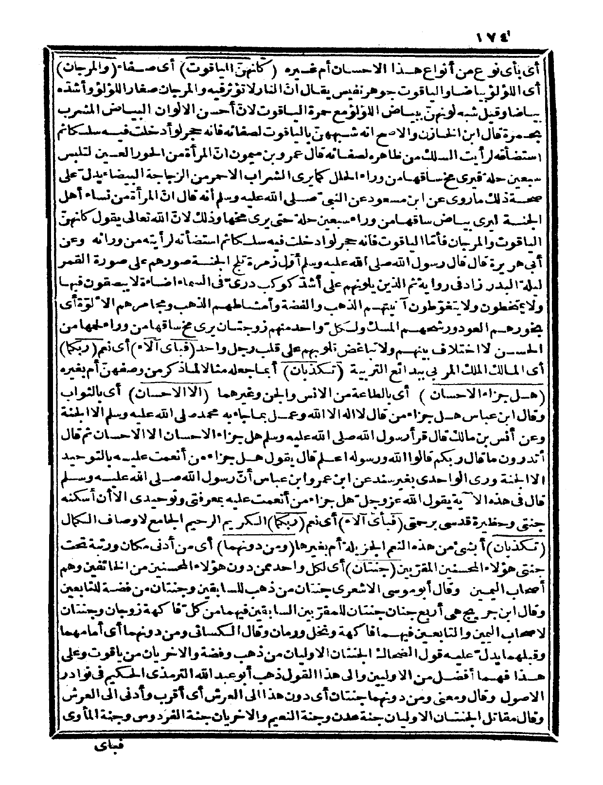 ورى الواحدي بغير سند عن ابن عمر وابن عباس: أنّ رسول الله صلى الله عليه وسلم قال: في هذه الآية يقول الله عز وجل هل جزاء من أنعمت عليه بمعرفتي وتوحيدي إلا أن أسكنه جنتي وحظيرة قدسي برحمتي.