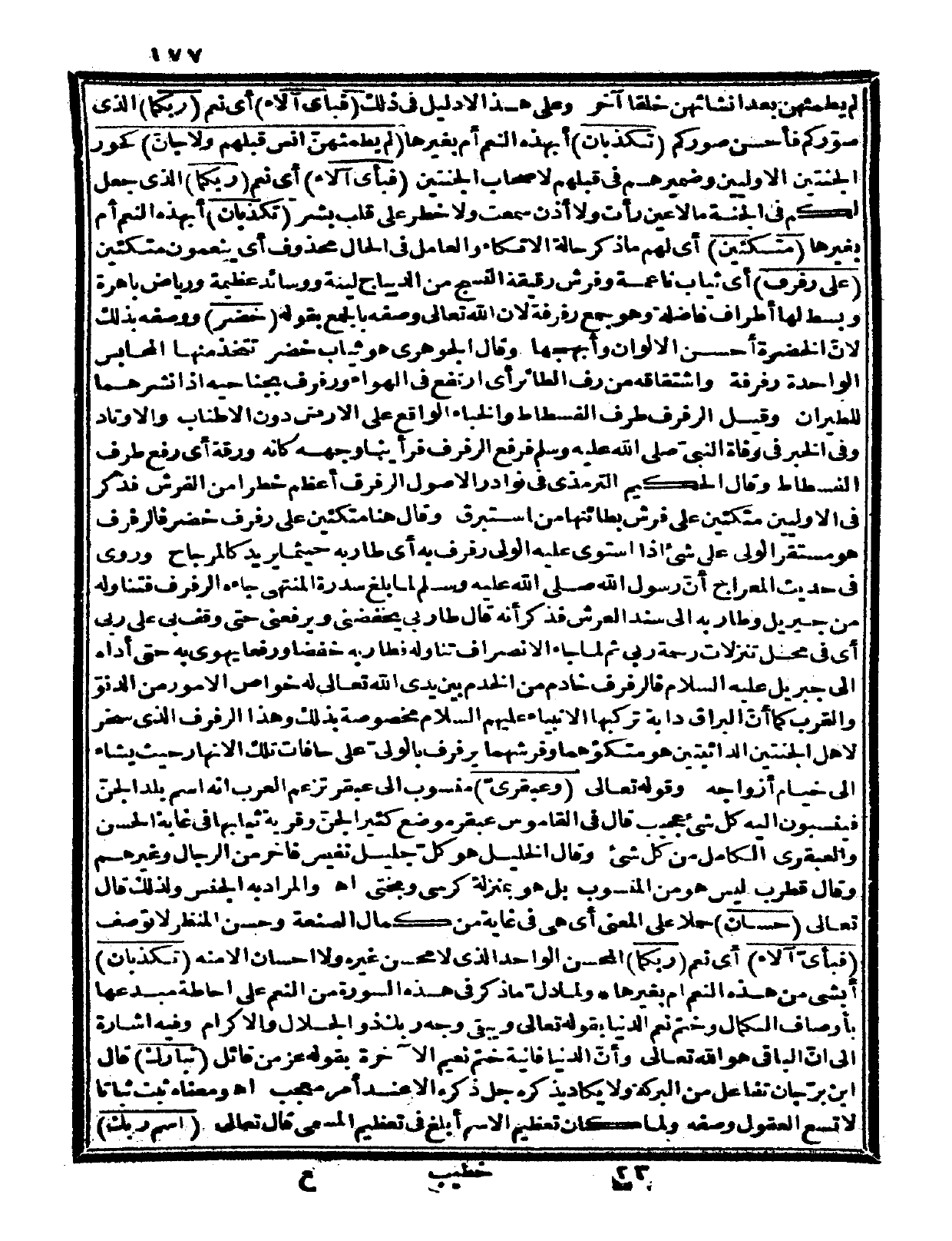 ولما دلّ ما ذكر في هذه السورة من النعم على إحاطة مبدعها بأوصاف الكمال وختم نعم الدنيا بقوله تعالى: {ويبقى وجه ربك ذو الجلال والإكرام} وفيه إشارة إلى أنّ الباقي هو الله تعالى وأنّ الدنيا فانية ختم نعيم الآخرة بقوله عز من قائل: {تبارك} قال ابن برّجان: تفاعل من البركة ولا يكاد يذكره جل ذكره إلا عند أمر معجب ا. هـ. ومعناه ثبت ثباتاً لا تسع العقول وصفه.