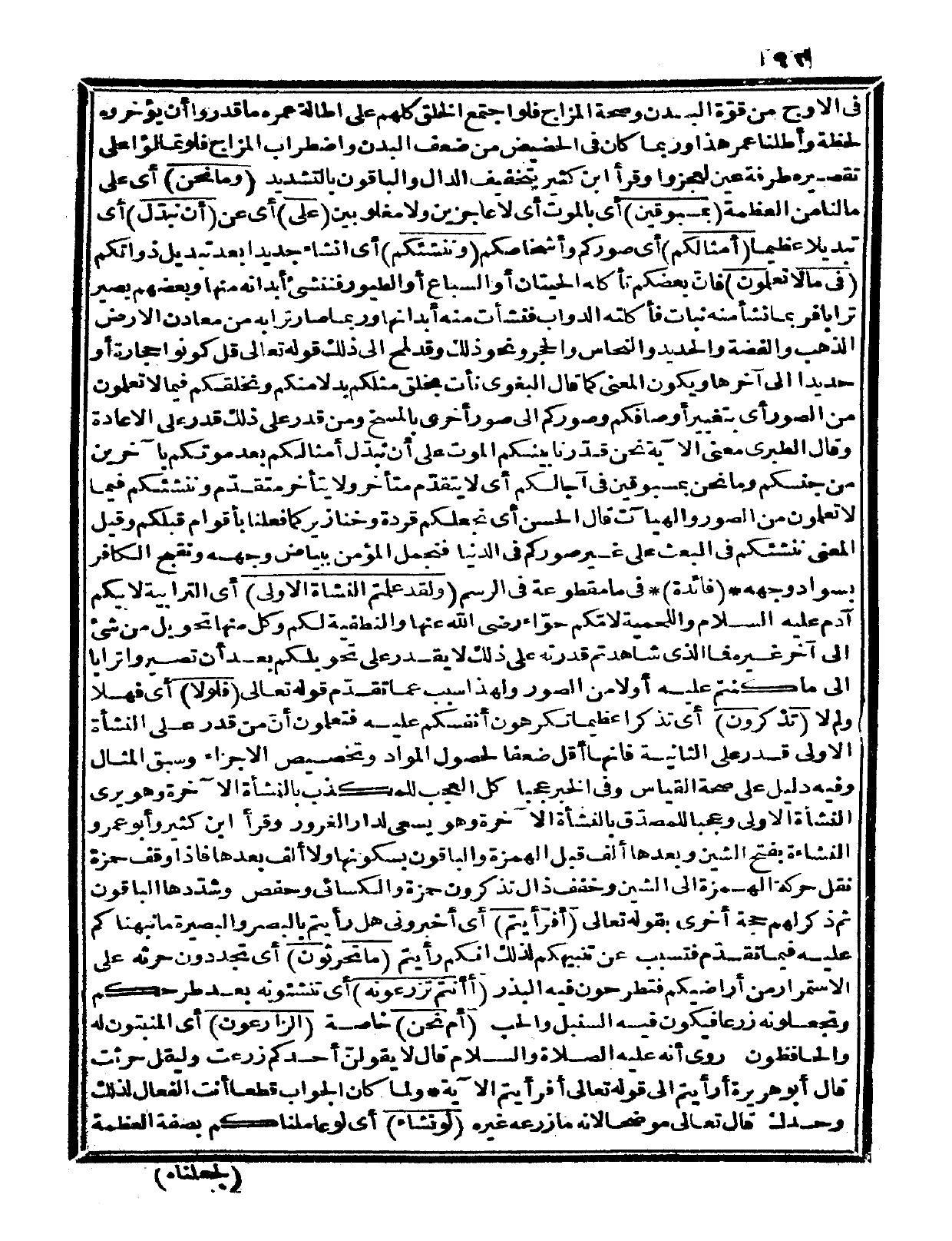 إلى آخرها ويكون المعنى كما قال البغوي: نأت بخلق مثلكم بدلاً منكم ونخلقكم فيما لا تعلمون من الصور أي: بتغيير أوصافكم وصوركم إلى صور أخرى بالمسخ ومن قدر على ذلك قدر على الإعادة وقال الطبري: معنى الآية نحن قدرنا بينكم الموت على أن نبدل أمثالكم بعد موتكم بآخرين من جنسكم، وما نحن بمسبوقين في آجالكم أي: لا يتقدّم متأخر ولا يتأخر متقدم، وننشئكم فيما لا تعلمون من الصور وقال الحسن: أي نجعلكم قردة وخنازير كما فعلنا بأقوام قبلكم، وقيل: المعنى: ننشئكم في البعث على غير صوركم في الدنيا فنجمل المؤمن ببياض وجهه ونقبح الكافر بسواد وجهه «فائدة» في ما مقطوعة في الرسم.H