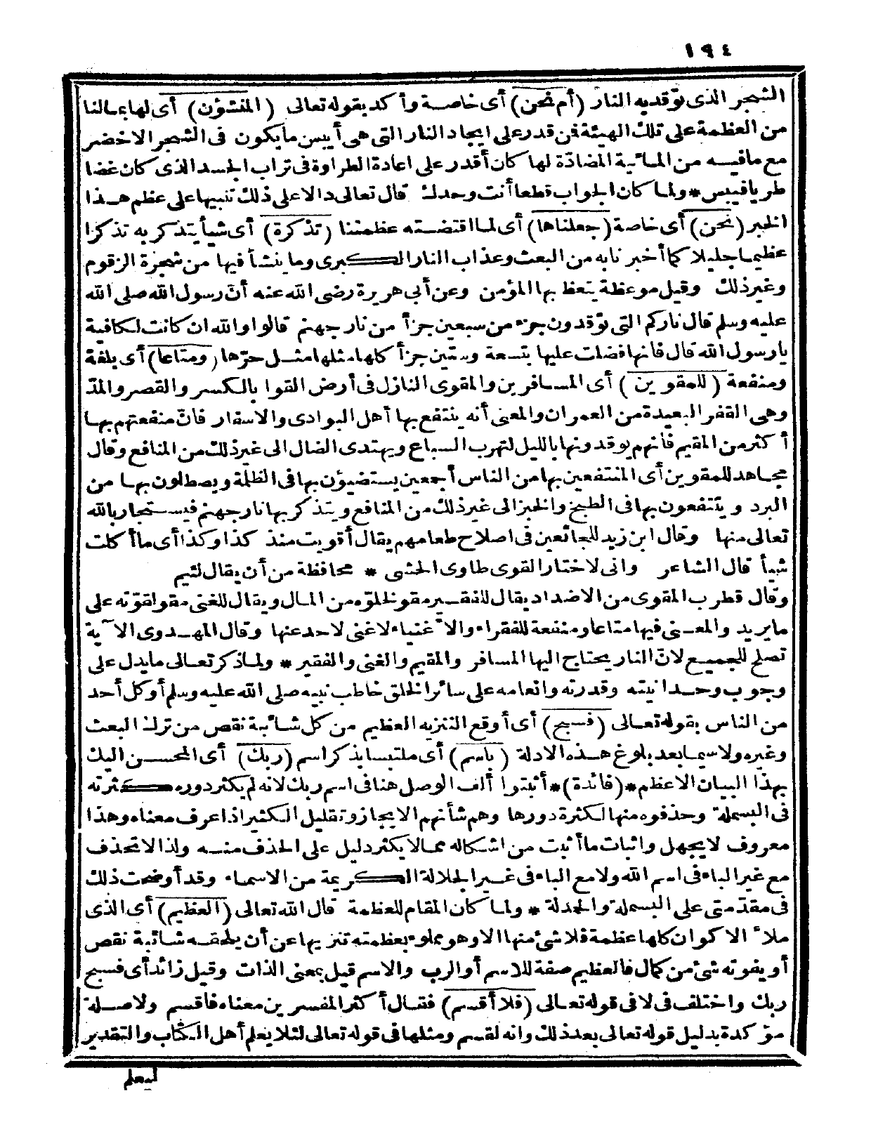 ولما كان الجواب قطعاً أنت وحدك قال تعالى دالاً على ذلك تنبيهاً على عظم هذا الخبر {نحن} أي: خاصة {جعلناها} أي: لما اقتضته عظمتنا {تذكرة} أي: شيئاً يتذكر به تذكراً عظيماً جليلاً كما أخبرنا به من البعث وعذاب النار الكبرى وما ينشأ فيها من شجرة الزقوم وغير ذلك، وقيل: موعظة يتعظ بها المؤمن؛ وعن أبي هريرة رضى الله عنه أنّ رسول الله صلى الله عليه وسلم قال: «ناركم التي توقدون جزء من سبعين جزأ من نار جهنم، قالوا: والله إن كانت لكافية يا رسول الله قال: فإنها فضلت عليها بتسعة وستين جزأ كلها مثلها مثل حرّها» . {ومتاعاً} أي: بلغة ومنفعة {للمقوين} أي: المسافرين والمقوى النازل في أرض القوا بالكسر والقصر والمدّ وهي القفر البعيدة من العمران، والمعنى: أنه ينتفع بها أهل البوادي والأسفار فإن منفعتهم بها أكثر من المقيم فإنهم يوقدونها بالليل لتهرب السباع ويهتدي الضال إلى غير ذلك من المنافع؛ وقال مجاهد: للمقوين أي: المنتفعين بها من الناس أجمعين يستضيئون بها في الظلمة ويصطلون بها من البرد وينتفعون بها في الطبخ والخبز إلى غير ذلك من المنافع، ويتذكر بها نار جهنم فيستجار بالله تعالى منها؛ وقال ابن زيد: للجائعين في إصلاح طعامهم يقال: أقويت منذ كذا وكذا أي: ما أكلت شيئاً قال الشاعر:
