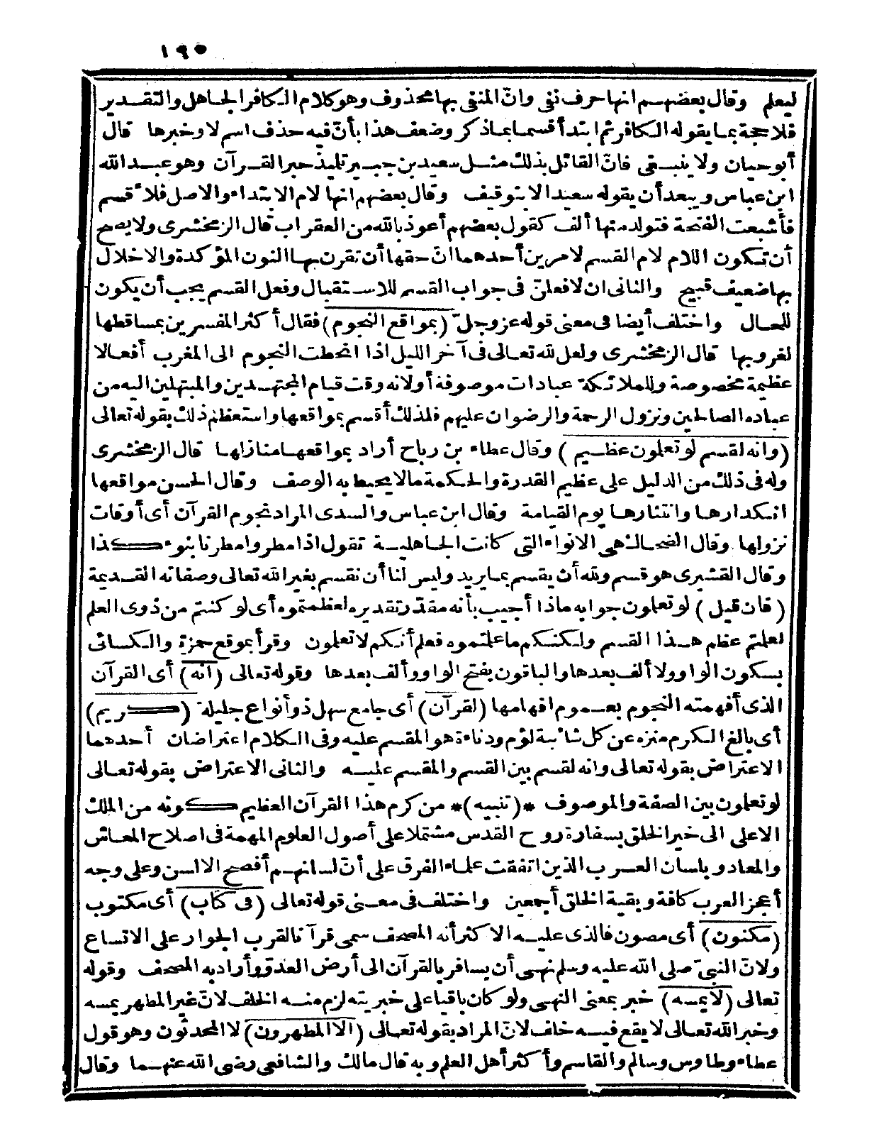 واختلف أيضاً في معنى قوله عز وجلّ: {بمواقع النجوم} فقال أكثر المفسرين: بمساقطها لغروبها، قال الزمخشري: ولعل الله تعالى في آخر الليل إذا انحطت النجوم إلى المغرب أفعالاً عظيمة مخصوصة وللملائكة عبادات موصوفة، أو لأنه وقت قيام المجتهدين والمبتهلين إليه من عباده الصالحين ونزول الرحمة والرضوان عليهم، فلذلك أقسم بمواقعها واستعظم ذلك بقوله تعالى: {وإنه لقسم لو تعلمون عظيم} وقال عطاء بن رباح: أراد بمواقعها منازلها، قال الزمخشري: وله في ذلك من الدليل على عظيم القدرة والحكمة ما لا يحيط به الوصف، وقال الحسن: مواقعها انكدارها وانتثارها يوم القيامة؛ وقال ابن عباس والسدي: المراد نجوم القرآن أي أوقات نزولها؛ وقال الضحاك: هي الأنواء التي كانت الجاهلية تقول إذا مطروا: مطرنا بنوء كذا، وقال القشيري: هو قسم ولله أن يقسم بما يريد وليس لنا أن نقسم بغير الله تعالى وصفاته القديمة فإن قيل لو تعلمون جوابه ماذا؟ أجيب: بأنه مقدّر تقديره لعظمتموه أي: لو كنتم من ذوي العلم لعلمتم عظم هذا القسم ولكنكم ما علمتموه فعلم أنكم لا تعلمون، وقرأ بموقع حمزة والكسائي بسكون الواو ولا ألف بعدها والباقون بفتح الواو ألف بعدها.