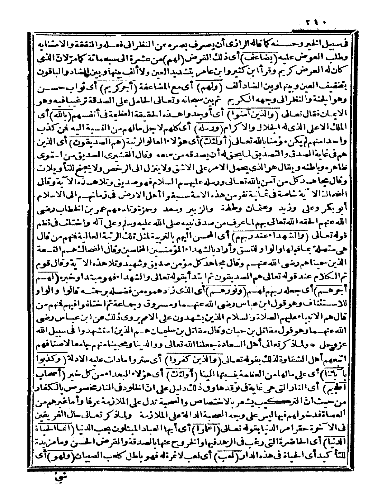 في سبيل الخير وحسنه؛ كما قال الرازي: أن يصرف بصره عن النظر إلى فعله والنفقة وإلا متنا به وطلب العوض عليه {يضاعف} أي: ذلك القرض {لهم} من عشرة إلى سبعمائة كما مرّ لأنّ الذي كان له العرض كريم، وقرأ ابن كثير وابن عامر: بتشديد العين ولا ألف بينها وبين الضاد؛ والباقون بتخفيف العين وبينها وبين الضاد ألف {ولهم} أي: مع المضاعفة {أجر كريم} أي: ثواب حسن وهو الجنة والنظر إلى وجهه الكريم.
