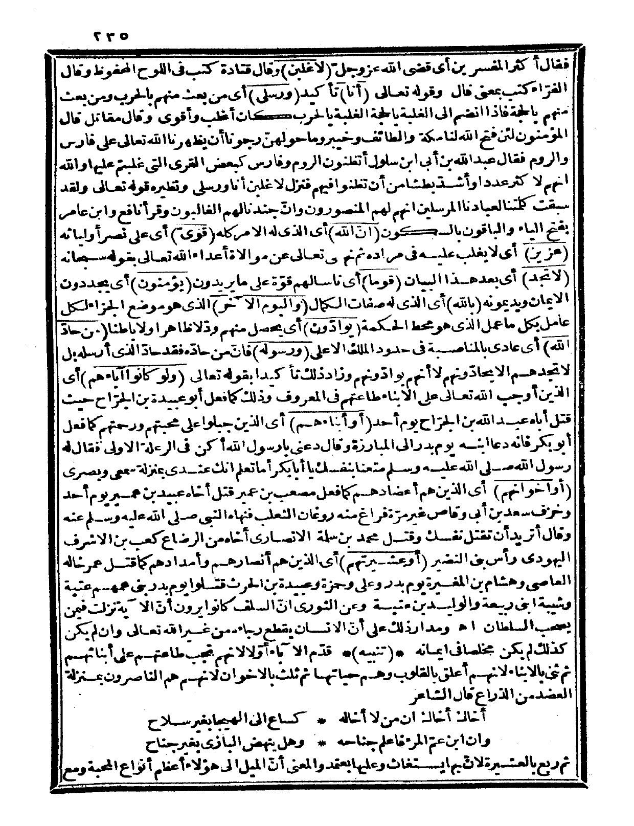 وقتل محمد بن سلمة الأنصاري أخاه من الرضاع كعب بن الأشرف اليهودي رأس بني النضير {أو عشيرتهم} أي: الذين هم أنصارهم وأمدادهم كما قتل عمر خاله العاصي وهشام بن المغيرة يوم بدر، وعلي وحمزة وعبيدة بن الحارث قتلوا يوم بدر بني عمهم عتبة وشيبة ابني ربيعة والوليد بن عتبة.