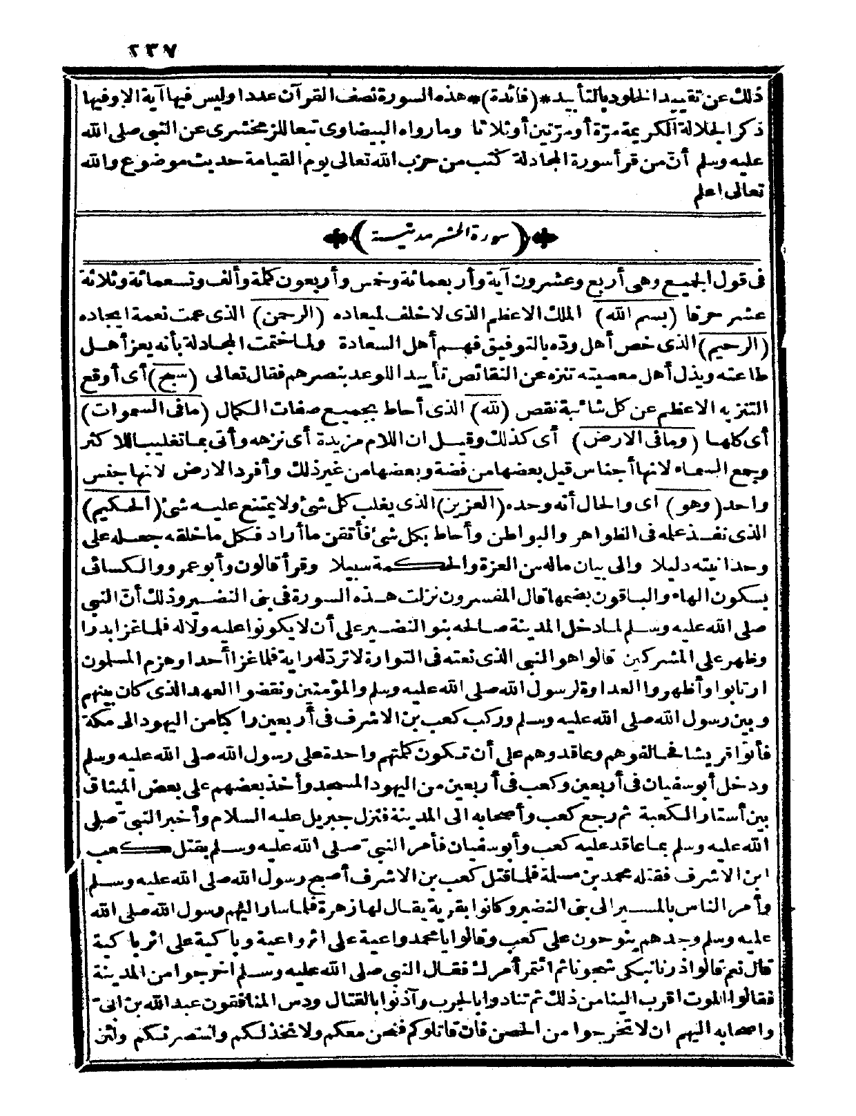 وقرأ قالون وأبو عمرو والكسائي بسكون الهاء، والباقون بضمها، قال المفسرون: نزلت هذه السورة في بني النضير، وذلك أنّ النبي صلى الله عليه وسلم لما دخل المدينة صالحه بنو النضير على أن لا يكونوا عليه ولا له، فلما غزا بدراً وظهر على المشركين قالوا: هو النبيّ الذي نعته في التوراة لا تردّ له راية، فلما غزا أحد وهزم المسلمون ارتابوا وأظهروا العداوة لرسول الله صلى الله عليه وسلم والمؤمنين، ونقضوا العهد الذي كان بينهم وبين رسول الله صلى الله عليه وسلم