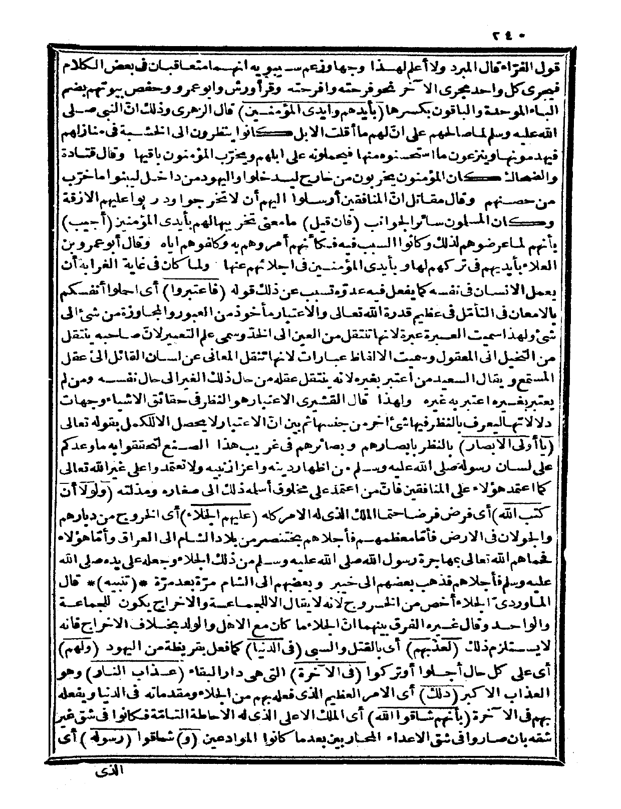 تنبيه:: قال الماوردي: الجلاء أخص من الخروج، لأنه لا يقال إلا للجماعة، والإخراج يكون للجماعة والواحد. وقال غيره: الفرق بينهما أنّ الجلاء ما كان مع الأهل والولد، بخلاف الإخراج فإنه لا يستلزم ذلك {لعذبهم} أي: بالقتل والسبي {في الدينا} كما فعل بقريظة من اليهود {ولهم} أي: على كل حال أجلوا أو تركوا {في الآخرة} التي هي دار البقاء {عذاب النار} وهو العذاب الأكبر.