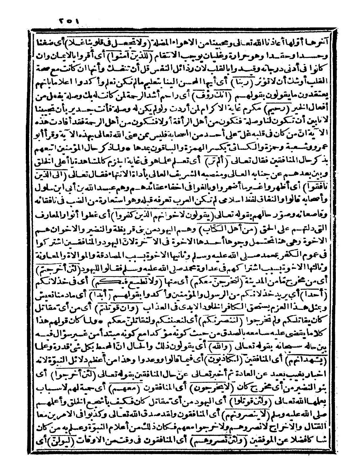 وثالثها: الأخوة بسبب اشتراكهم في عداوة محمد صلى الله عليه وسلم فقالوا لليهود: {لئن أخرجتم} أي: من مخرجّ ما من المدينة {لنخرجن معكم} أي: منها {ولا نطيع فيكم} أي في خذلانكم {أحداً} أي يريد خذلانكم من الرسول والمؤمنين. وأكدوا بقولهم: {أبداً} أي: ما دمنا نعيش، وبمثل هذا العزم يستحق الكافر الخلود الأبدي في العذاب {وإن قوتلتم} أي: من أي مقاتل كان يقاتلكم ولم تخرجوا {لننصرنكم} أي: لنعيننكم ولنقاتلنّ معكم.
