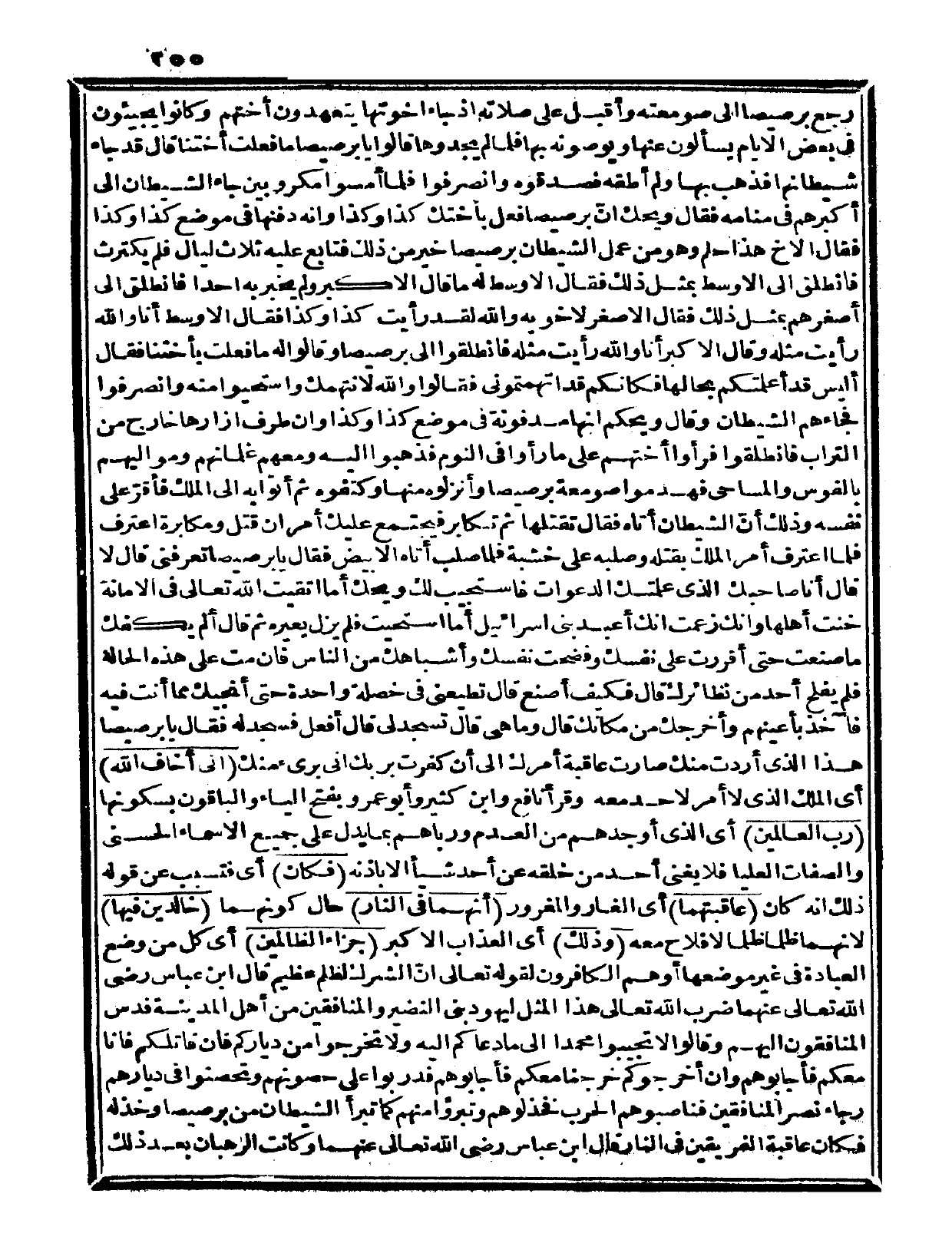 قتل ومكابرة اعترف. فلما اعترف أمر الملك بقتله وصلبه على خشبة، فلما صلب أتاه الأبيض فقال: يا برصيصاً تعرفني، قال: لا، قال: أنا صاحبك الذي علمتك الدعوات فاستجيب لك ويحك أما اتقيت الله تعالى في الأمانة خنت أهلها، وإنك زعمت أنك أعبد بني إسرائيل، أما استحيت فلم يزل يعيره، ثم قال: ألم يكفك ما صنعت حتى أقررت على نفسك وفضحت نفسك وأشباهك من الناس، فإن مت على هذه الحالة فلم يفلح أحد من نظائرك، قال: فكيف أصنع؟ قال: تطيعني في خصلة واحدة حتى أنجيك مما أنت فيه، فأخذ بأعينهم وأخرجك من مكانك، قال: وما هي؟ قال: تسجد لي، قال: أفعل فسجد له فقال: يا برصيصا هذا الذي أردت منك صارت عاقبة أمرك إلى أن كفرت بربك إني برئ منك» .