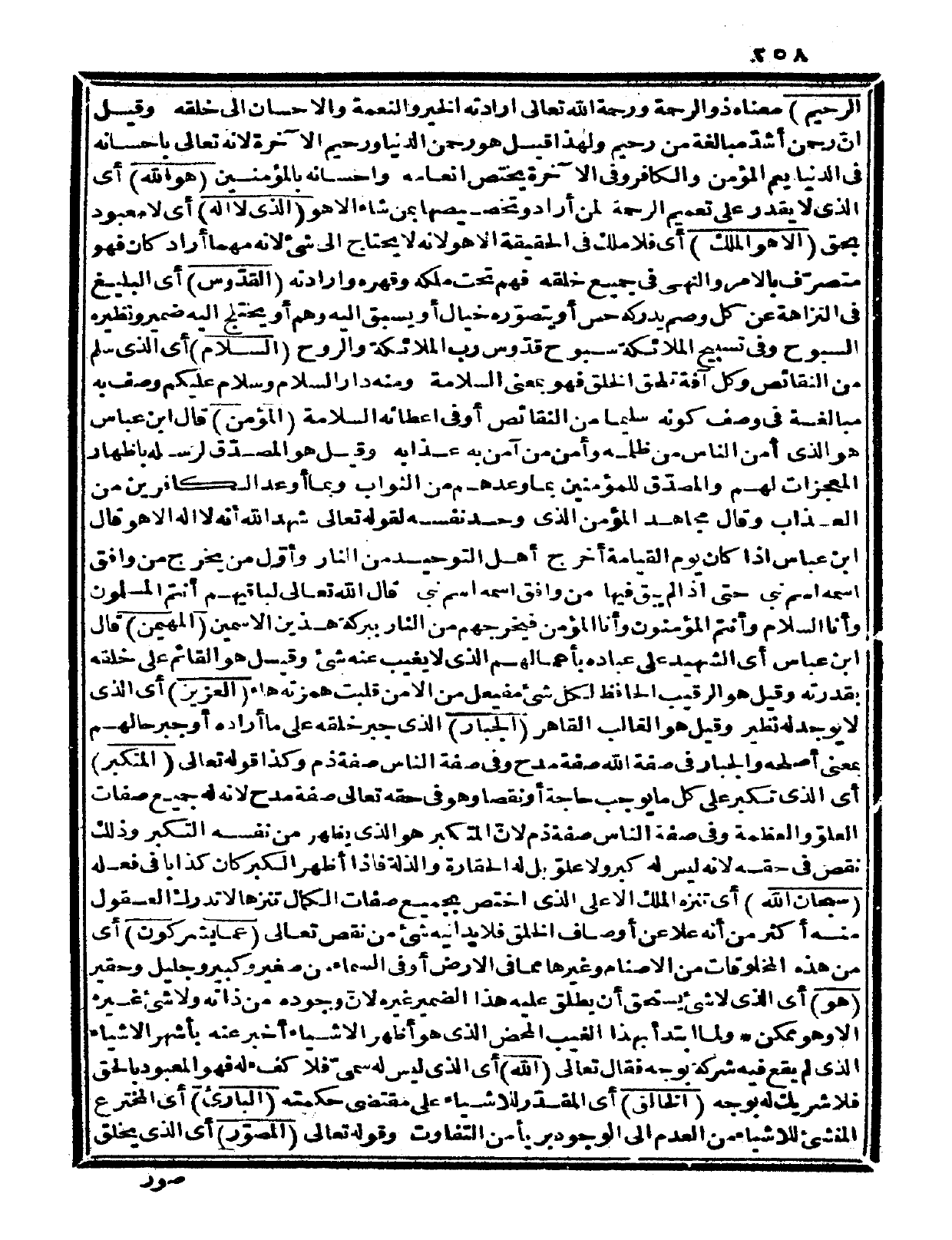 ونظيره: السبوح وفي تسبيح الملائكة سبوح قدوس رب الملائكة والروح {السلام} أي: الذي سلم من النقائص وكل آفة تلحق الخلق، فهو بمعنى السلامة ومنه دار السلام وسلام عليكم وصف به مبالغة في وصف كونه سليماً من النقائص، أو في إعطائه السلامة {المؤمن} قال ابن عباس: هو الذي أمن الناس من ظلمه، وأمن من آمن به عذابه. وقيل: هو المصدّق لرسله بإظهار المعجزات لهم، والمصدّق للمؤمنين بما وعدهم من الثواب وبما أوعد الكافرين من العذاب. وقال مجاهد: المؤمن الذي وحد نفسه لقوله تعالى: {شهد الله أنه لا إله إلا هو} (آل عمران: 18)
