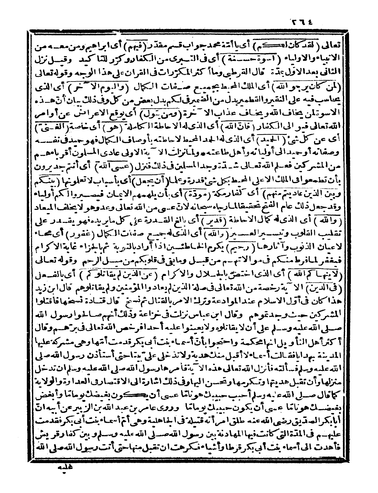 وقال أكثر أهل التأويل: إنها محكمة، واحتجوا بأنّ أسماء بنت أبي بكر قدمت أمّها وهي مشركة عليها المدينة بهدايا، فقالت أسماء: لا أقبل منك هدية، ولا تدخلي علي بيتاً حتى أستأذن رسول الله صلى الله عليه وسلم فسألته فأنزل الله تعالى هذه الآية فأمرها رسول الله صلى الله عليه وسلم أن تدخل منزلها، وأن تقبل هديتها وتكرمها وتحسن إليها، وفي ذلك إشارة إلى الاقتصار في العداوة والولاية، كما قال صلى الله عليه وسلم «أحبب حبيبك هوناً مّا عسى أن يكون بغيضك يوماً ما، وأبغض بغيضك هوناً مّا عسى أن يكون حبيبك يوماً ما» وروى عامر بن عبد الله بن الزبير عن أبيه «أنّ أبا بكر الصدّيق رضى الله عنه طلق امرأته قتيلة في الجاهلية، وهي أمّ أسماء بنت أبي بكر فقدمت عليهم في المدّة التي كانت فيها المهادنة بين رسول الله صلى الله عليه وسلم وبين كفار قريش، فأهدت إلى أسماء بنت أبي بكر قرطاً وأشياء، فكرهت أن تقبل منها حتى أتت رسول الله صلى الله