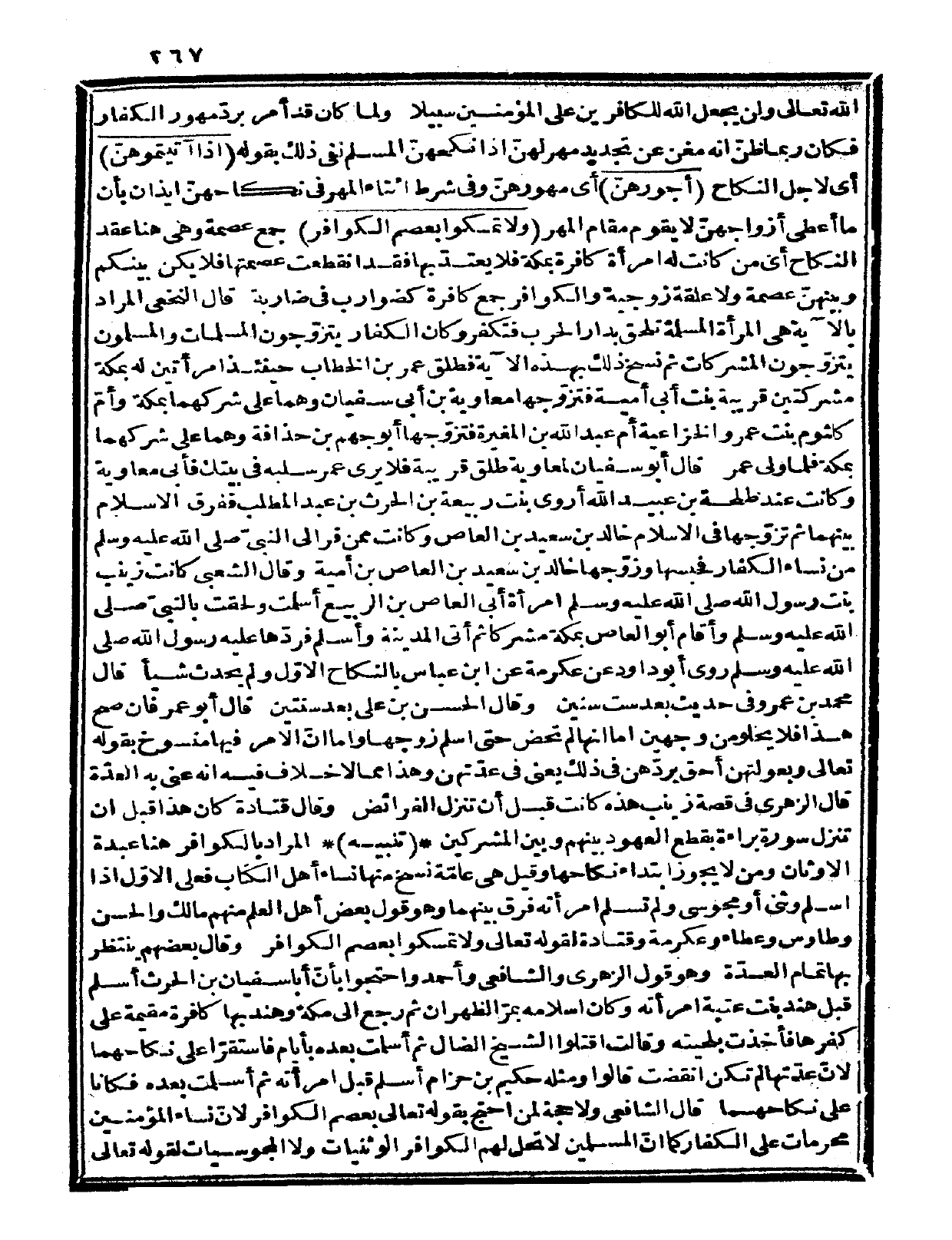 ولما كان قد أمر برد مهور الكفار فكان ربما ظنّ أنه مغن عن تجديد مهر لهنّ إذا نكحهنّ المسلم نفى ذلك بقوله: {إذا آتيتموهنّ} أي: لأجل النكاح {أجورهنّ} أي: مهورهنّ، وفي شرط أثناء المهر في نكاحهنّ إيذان بأن ما أعطى أزواجهنّ لا يقوم مقام المهر {ولا تمسكوا بعصم الكوافر} جمع عصمة، وهي هنا عقد النكاح، أي: من كانت له امرأة كافرة بمكة فلا يعتدّ بها فقد انقطعت عصمتها فلا يكن بينكم وبينهنّ عصمة ولا علقة زوجية، والكوافر جمع كافرة كضوارب في ضاربة. قال النخعي: المراد بالآية هي المرأة المسلمة تلحق بدار الحرب فتكفر، وكان الكفار يتزوّجون المسلمات، والمسلمون يتزوجون المشركات، ثم نسخ ذلك بهذه الآية فطلق عمر بن الخطاب حينئذ امرأتين له بمكة مشركتين قريبة بنت أبي أمية فتزوجها معاوية بن أبي سفيان، وهما على شركهما بمكة وأمّ كلثوم بنت عمر والخزاعية أم عبد الله بن المغيرة فتزوجها أبو جهم بن حذافة، وهما على شركهما بمكة فلما ولي عمر قال أبو سفيان لمعاوية: طلق قريبة فلا يرى عمر سلبه في بيتك فأبى معاوية، وكانت عند طلحة بن عبيد الله أروى بنت ربيعة بن الحارث بن عبد المطلب ففرق الإسلام بينهما، ثم تزوجها في الإسلام خالد بن سعيد بن العاص، وكانت ممن فرت إلى النبيّ صلى الله عليه وسلم من نساء الكفار فحبسها وزوجها خالد بن سعيد بن العاص بن أمية. وقال الشعبي: كانت زينب بنت رسول الله صلى الله عليه وسلم امرأة أبي العاص بن الربيع أسلمت ولحقت بالنبيّ صلى الله عليه وسلم وأقام أبو العاص بمكة مشركاً، ثم أتى المدينة وأسلم فردّها عليه رسول الله صلى الله عليه وسلم روى أبو داود عن عكرمة عن ابن عباس بالنكاح الأوّل، ولم يحدث شيئاً. قال محمد بن عمرو في حديث بعد ست سنين، وقال الحسن بن علي: بعد سنتين، قال أبو عمر: فإن صح هذا فلا يخلو من وجهين: إما أنها لم تحض حتى أسلم زوجها، وإما أنّ الأمر فيها منسوخ بقوله تعالى: {وبعولتهن أحق