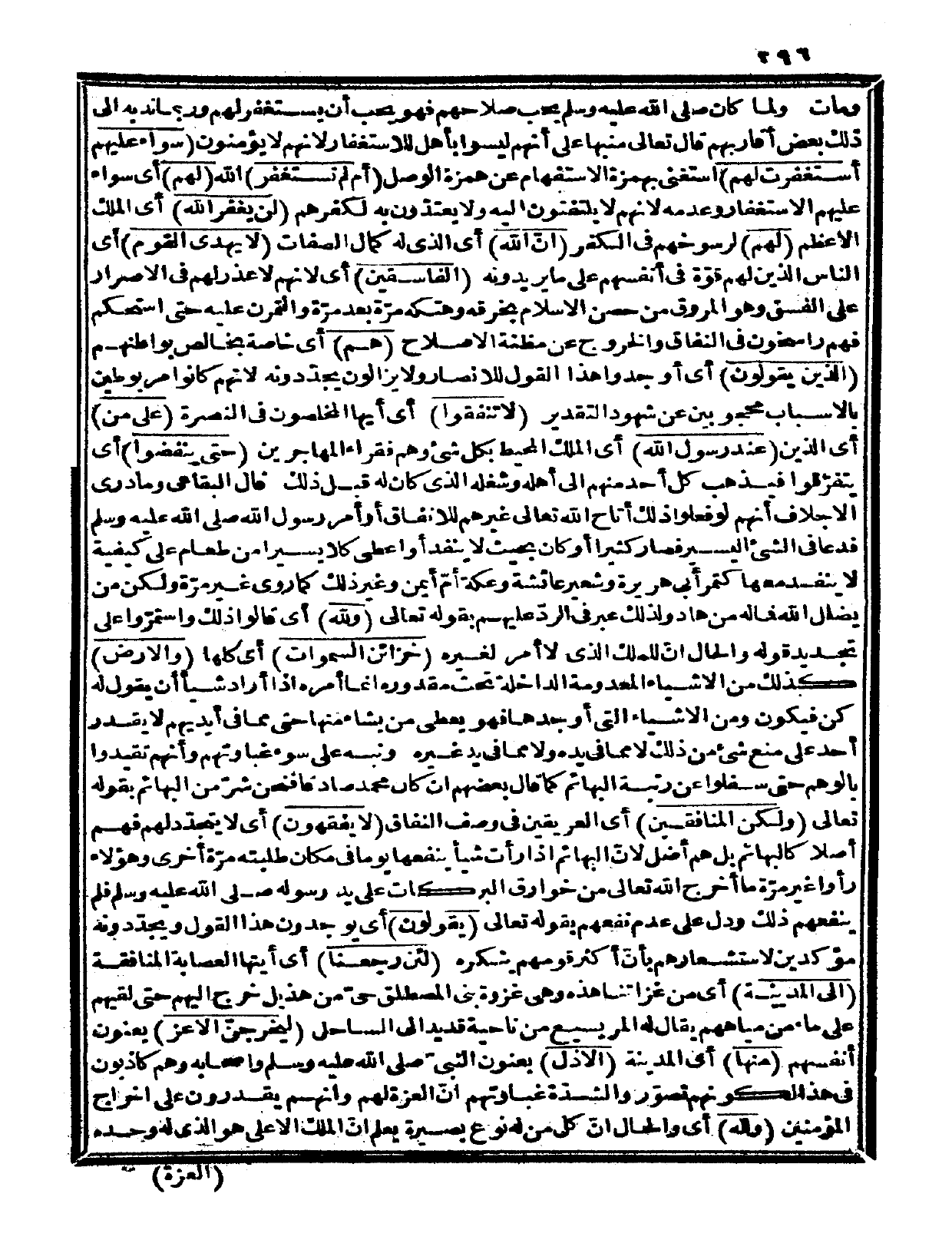 {يقولون} أي: يوجدون هذا القول ويجدّدونه مؤكدين لاستشعارهم بأنّ أكثر قومهم ينكره {لئن رجعنا} أي: أيتها العصابة المنافقة {إلى المدينة} أي: من غزاتنا هذه، وهي غزوة بني المصطلق حيّ من هذيل خرج إليهم حتى لقيهم على ماء من مياههم يقال له: المريسيع من ناحية قديد إلى الساحل {ليخرجنّ الأعز} يعنون أنفسهم {منها} أي: المدينة {الأذل} يعنون النبيّ صلى الله عليه وسلم وأصحابه، وهم كاذبون في هذا لكونهم تصوروا لشدة غباوتهم أنّ العزة لهم، وأنهم يقدرون على إخراج المؤمنين {وله} أي: والحال أنّ كل من له نوع بصيرة يعلم أنّ الملك الأعلى هو الذي له وحده