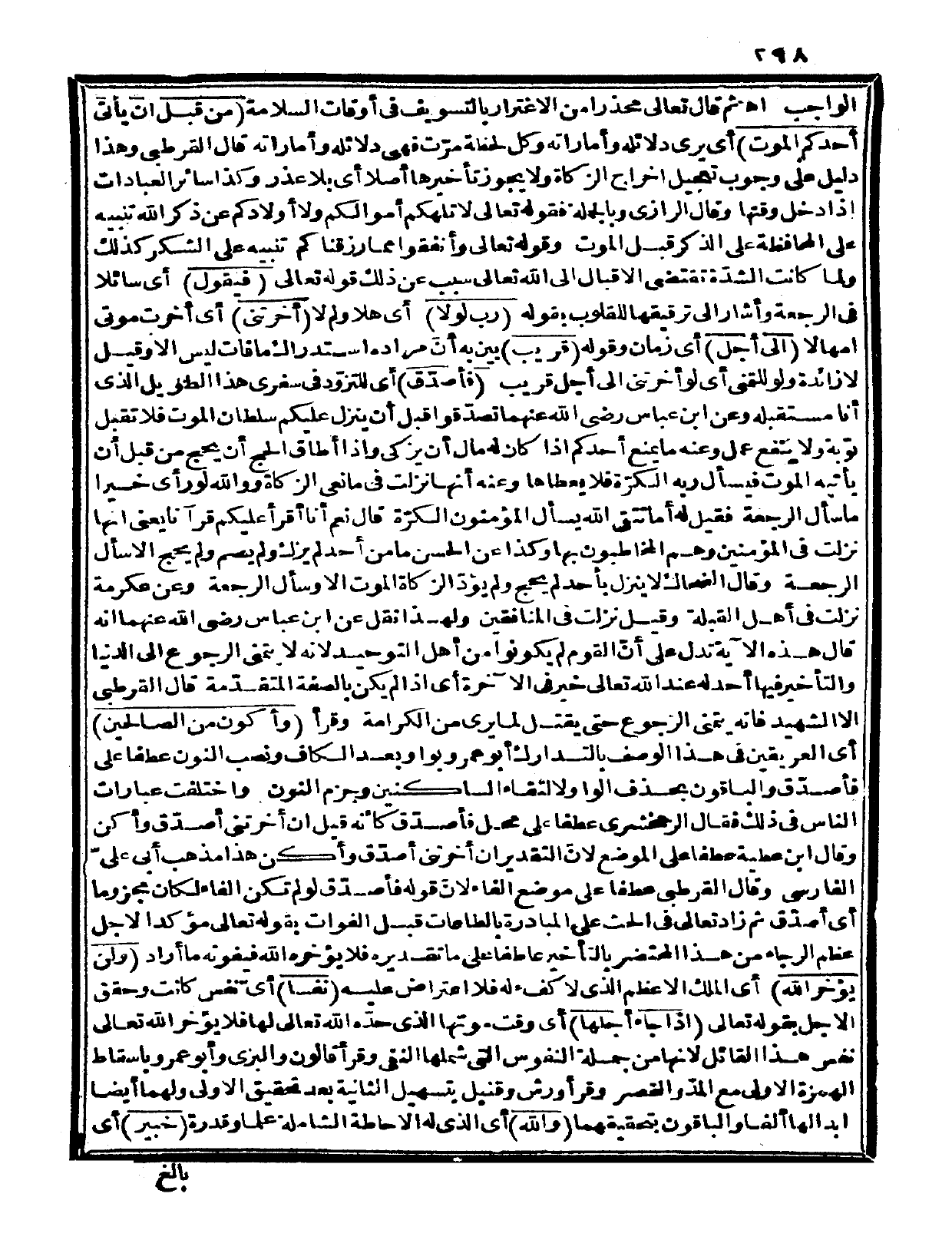 الواجب ا. هـ. ثم قال تعالى محذراً من الاغترار بالتسويف في أوقات السلامة: {من قبل أن يأتي أحدكم الموت} أي: يرى دلائله وأماراته وكل لحظة مرّت فهي دلائله وأماراته. قال القرطبي: وهذا دليل على وجوب تعجيل إخراج الزكاة، ولا يجوز تأخيرها أصلاً، أي: بلا عذر، وكذا سائر العبادات إذا دخل وقتها. وقال الرازي: وبالجملة فقوله تعالى: {لا تلهكم أموالكم ولا أولادكم عن ذكر الله} تنبيه على المحافظة على الذكر قبل الموت، وقوله تعالى: {وأنفقوا مما رزقناكم} تنبيه على الشكر كذلك.
