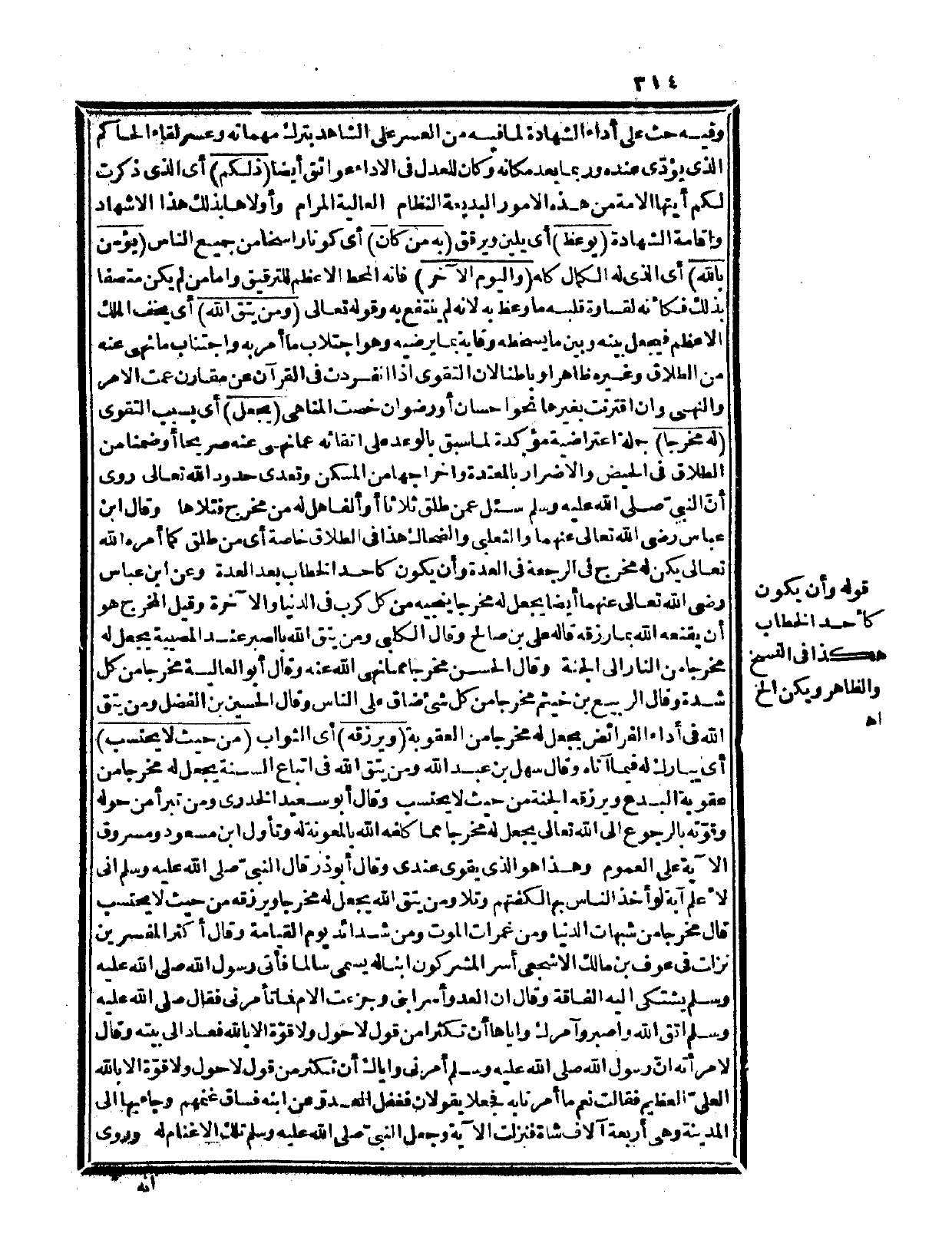 وقال أبو ذر: «قال النبي صلى الله عليه وسلم إني لأعلم آيه لو أخذ الناس بها لكفتهم، وتلا: {ومن يتق الله يجعل له مخرجاً ويرزقه من حيث لا يحتسب} قال: مخرجاً من شبهات الدنيا، ومن غمرات الموت، ومن شدائد يوم القيامة» .