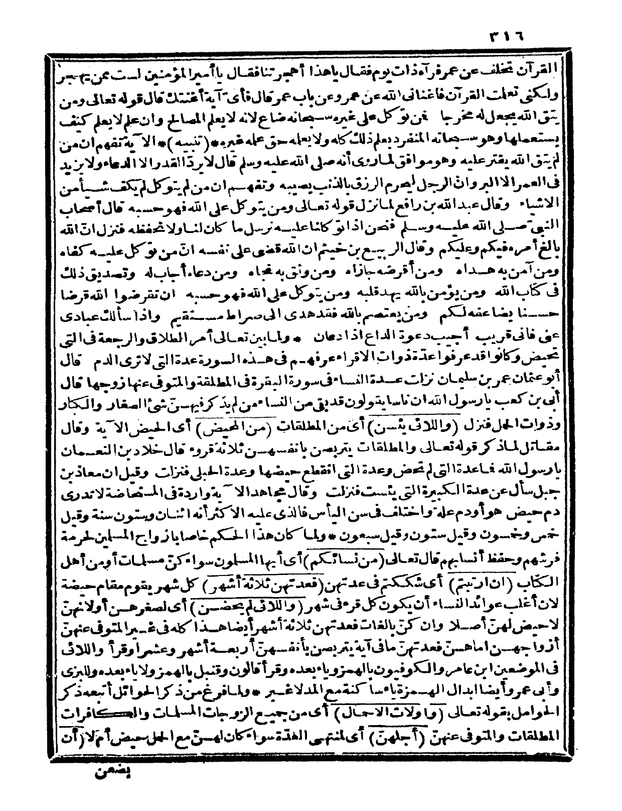 القرآن تخلف عن عمر فرآه ذات يوم فقال: يا هذا أهجرتنا؟ فقال: يا أمير المؤمنين لست ممن يهجر، ولكني تعلمت القرآن فأغناني الله عن عمر وعن باب عمر، قال: فأي آية أغنتك قال: قوله تعالى: {ومن يتق الله يجعل له مخرجاً} فمن توكل على غيره سبحانه ضاع، لأنه لا يعلم المصالح وإن علم لا يعلم كيف يستعملها، وهو سبحانه المنفرد بعلم ذلك كله ولا يعلمه حق علمه غيره.