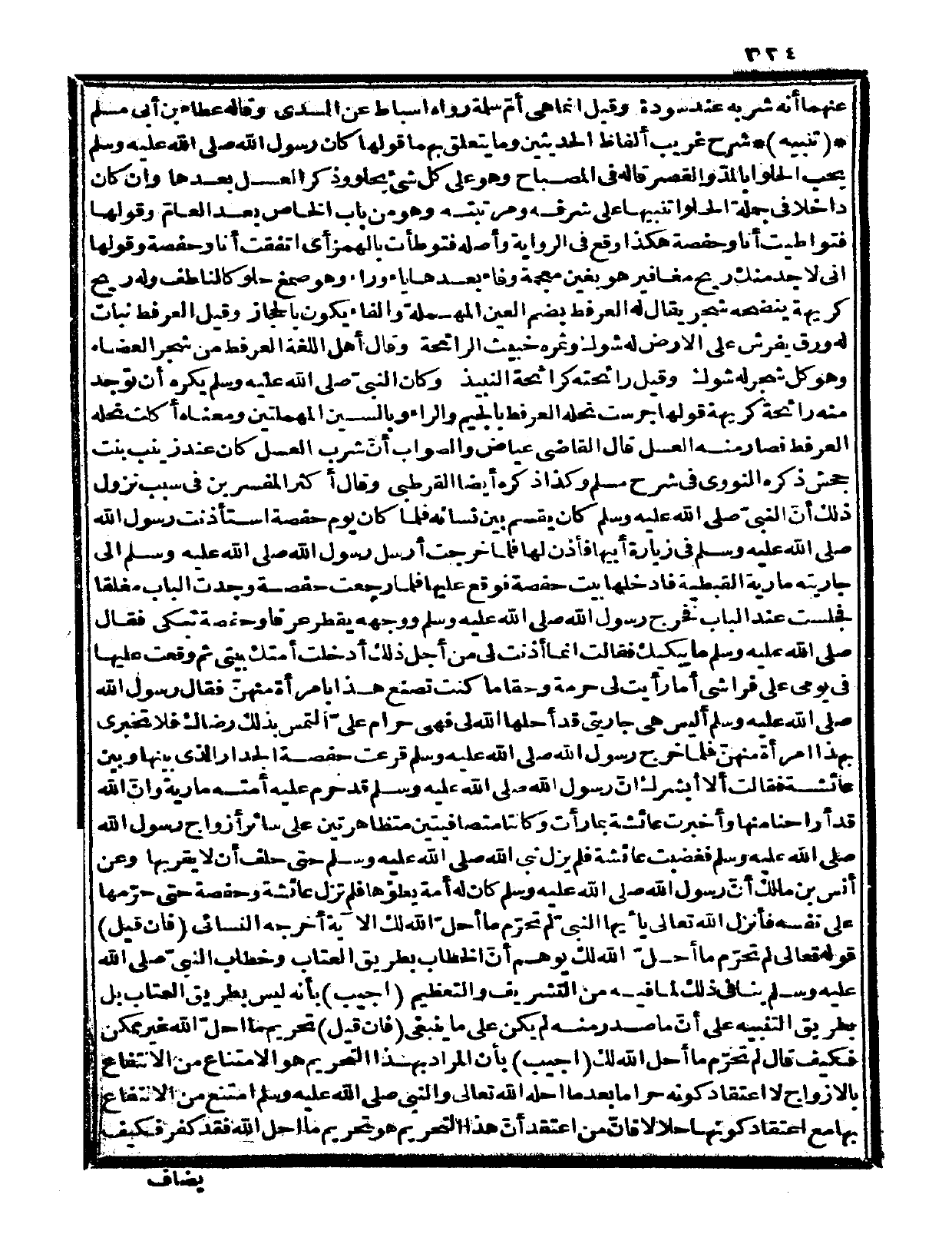 تنبيه: شرح غريب ألفاظ الحديثين وما يتعلق بهما قولها: كان رسول الله صلى الله عليه وسلم يحب الحلوى بالمد والقصر قاله في «المصباح» ، وهو على كل شيء يحلو، وذكر العسل بعدها وإن كان داخلاً في جملة الحلوى تنبيهاً على شرفه ومرتبته، وهو من باب الخاص بعد العام. وقولها: فتواطيت أنا وحفصة هكذا وقع في الرواية، وأصله: فتوطأت بالهمز، أي: اتفقت أنا وحفصة. وقولها: إني لأجد منك ريح مغافير، هو بغين معجمة وفاء بعدها ياء وراء، وهو صمغ حلو كالناطف وله ريح كريهة ينضحه شجر يقال له: العرفط بضم العين المهملة والفاء يكون بالحجاز، وقيل: العرفط نبات له ورق يفرش على الارض له شوك وثمره خبيث الرائحة.