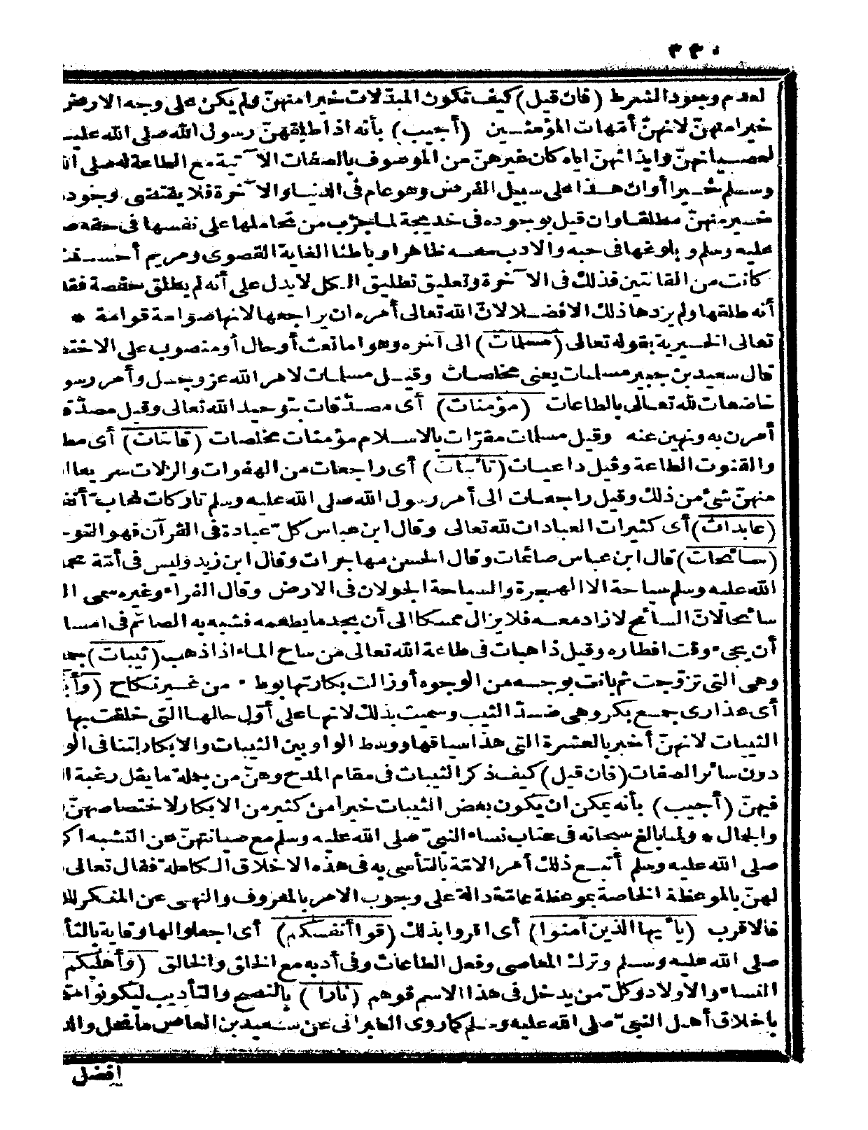 وإن قيل: بوجوده في خديجة لما جرب من تحاملها على نفسها في حقه صلى الله عليه وسلم وبلوغها في حبه والأدب معه ظاهراً وباطناً الغاية القصوى، ومريم أحسنت حين كانت من القانتين فذلك في الآخرة، وتعليق تطليق الكل لا يدل على أنه لم يطلق حفصة. فقد روي أنه طلقها ولم يزدها ذلك إلا فضلاً لأن الله تعالى أمره أن يراجعها، لأنها صوامة قوامة.