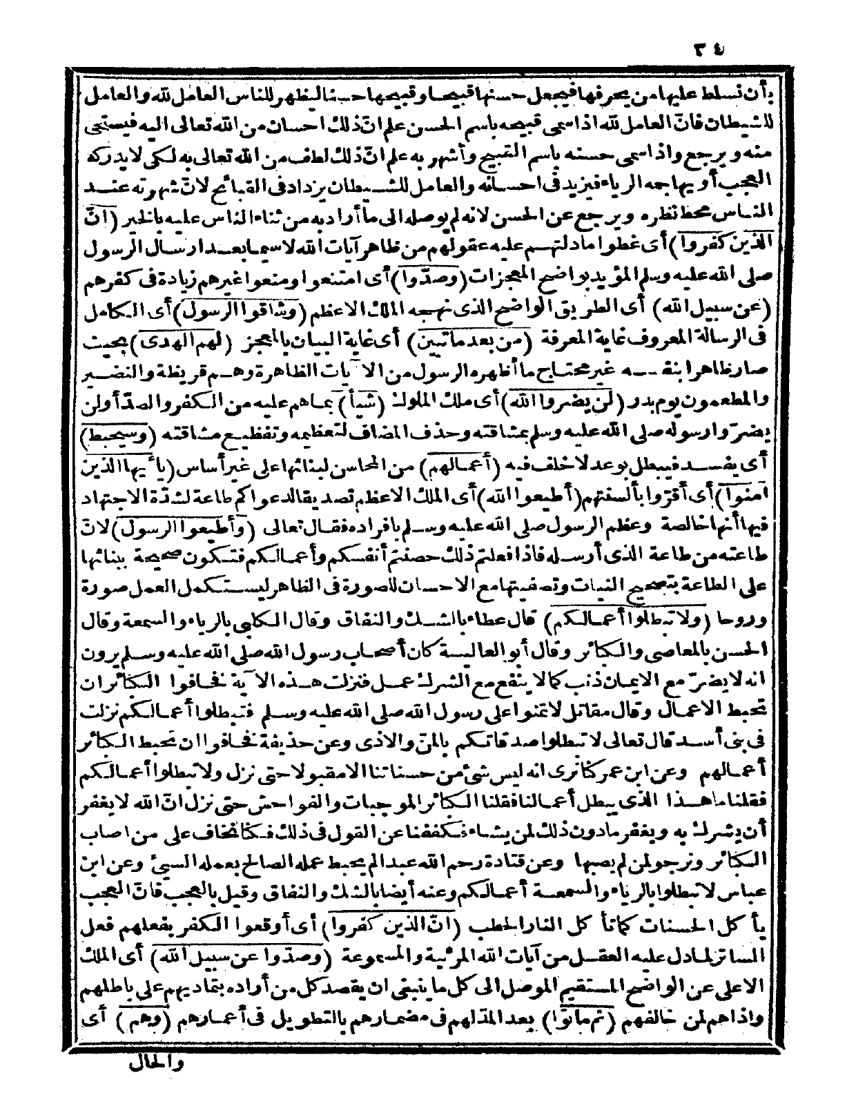 وعن حذيفة فخافوا أن تحبط الكبائر أعمالهم. وعن ابن عمر: كنا نرى أنه ليس شيء من حسناتنا إلا مقبولاً حتى {نزل ولا تبطلوا أعمالكم} فقلنا ما هذا الذي يبطل أعمالنا فقلنا الكبائر الموجبات والفواحش، حتى نزل {إنّ الله لا يغفر أن يشرك به ويغفر ما دون ذلك لمن يشاء} (النساء: 48)