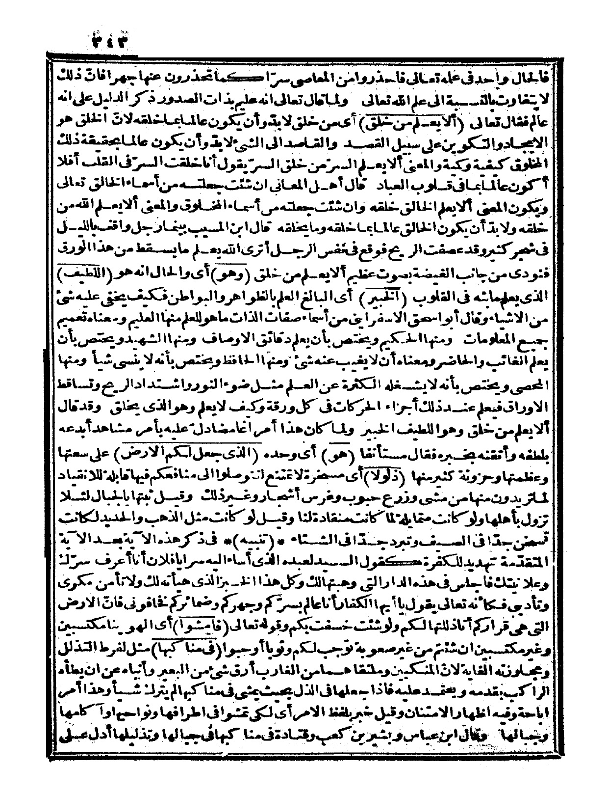 وقال أبو إسحاق الاسفرايني: من أسماء صفات الذات ما هو للعلم منها العليم ومعناه تعميم جميع المعلومات، ومنها الحكيم، ويختص بأن يعلم دقائق الأوصاف، ومنها الشهيد، ويختص بأن يعلم الغائب والحاضر، ومعناه أن لا يغيب عنه شيء، ومنها الحافظ ويختص بأنه لا ينسى شيئاً، ومنها المحصي ويختص بأنه لا يشغله الكثرة عن العلم مثل ضوء النور واشتداد الريح وتساقط الأوراق فيعلم عند ذلك أجزاء الحركات في كل ورقة، وكيف لا يعلم وهو الذي يخلق وقد قال: {ألا يعلم من خلق وهو اللطيف الخبير} .