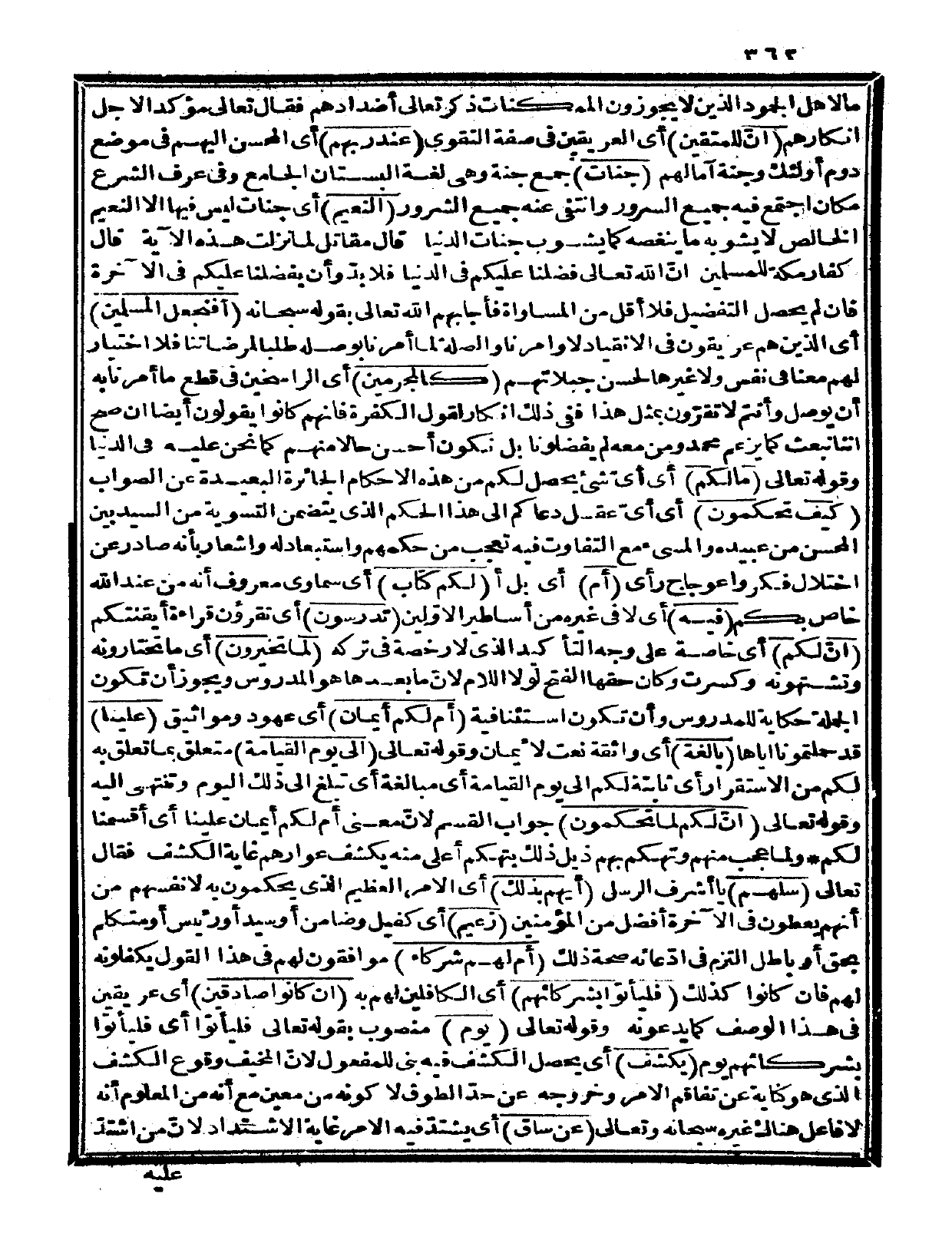 {إن للمتقين} أي: العريقين في صفة التقوى {عند ربهم} أي: المحسن إليهم في موضع دوم أولئك وجنة آمالهم {جنات} جمع جنة وهي لغة: البستان الجامع، وفي عرف الشرع: مكان اجتمع فيه جميع السرور وانتفى عنه جميع الشرور {النعيم} أي: جنات ليس فيها إلا النعيم الخالص لا يشوبه ما ينغصه كما يشوب جنات الدنيا.