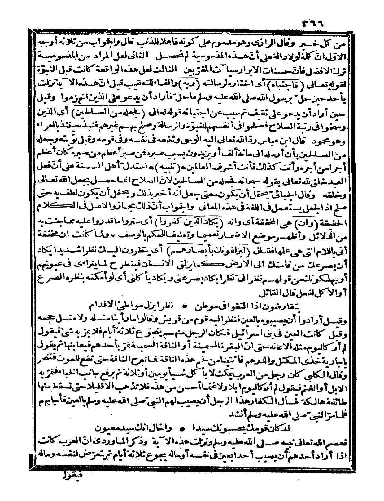 فعصم الله تعالى نبيه صلى الله عليه وسلم ونزلت هذه الآية، وذكر الماوردي أن العرب كانت إذا أراد أحدهم أن يصيب أحداً بعين في نفسه أو ماله يجوع ثلاثة أيام ثم يتعرض لنفسه وماله