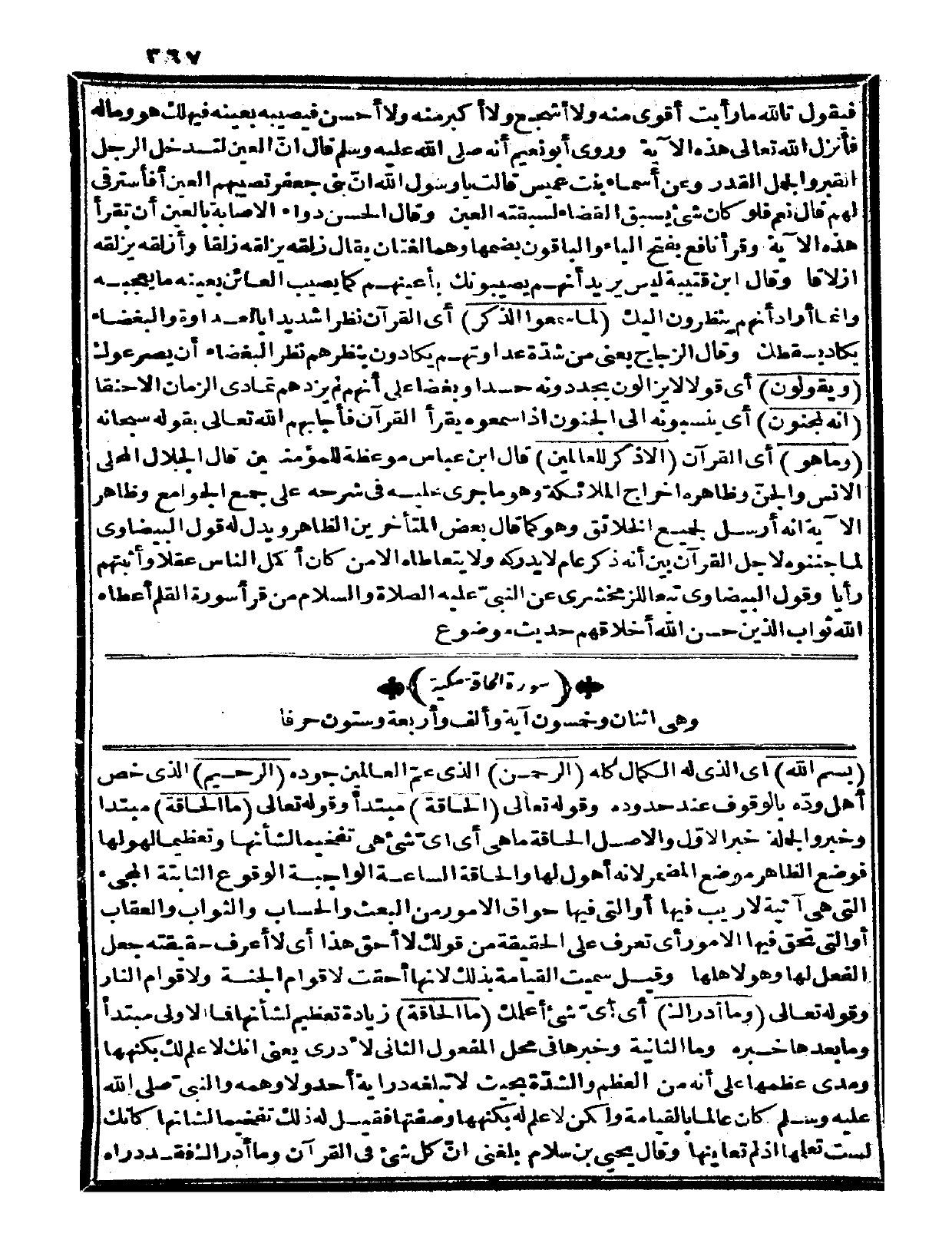 {ما الحاقة} مبتدأ وخبر، والجملة خبر الأول، والأصل الحاقة ما هي، أي: أي شيء هي تفخيماً لشأنها وتعظيماً لهولها، فوضع الظاهر موضع المضمر لأنه أهول لها. والحاقة الساعة الواجبة الوقوع الثابتة المجيء التي هي آتية لا ريب فيها، أو التي فيها حواق الأمور من البعث والحساب والثواب والعقاب، أو التي تحق فيها الأمور، أي: تعرف على الحقيقة من قولك: لا أحق هذا، أي: لا أعرف حقيقته، جعل الفعل لها وهو لأهلها، وقيل: سميت القيامة بذلك لأنها أحقت لأقوام الجنة ولأقوام النار. وقوله تعالى: